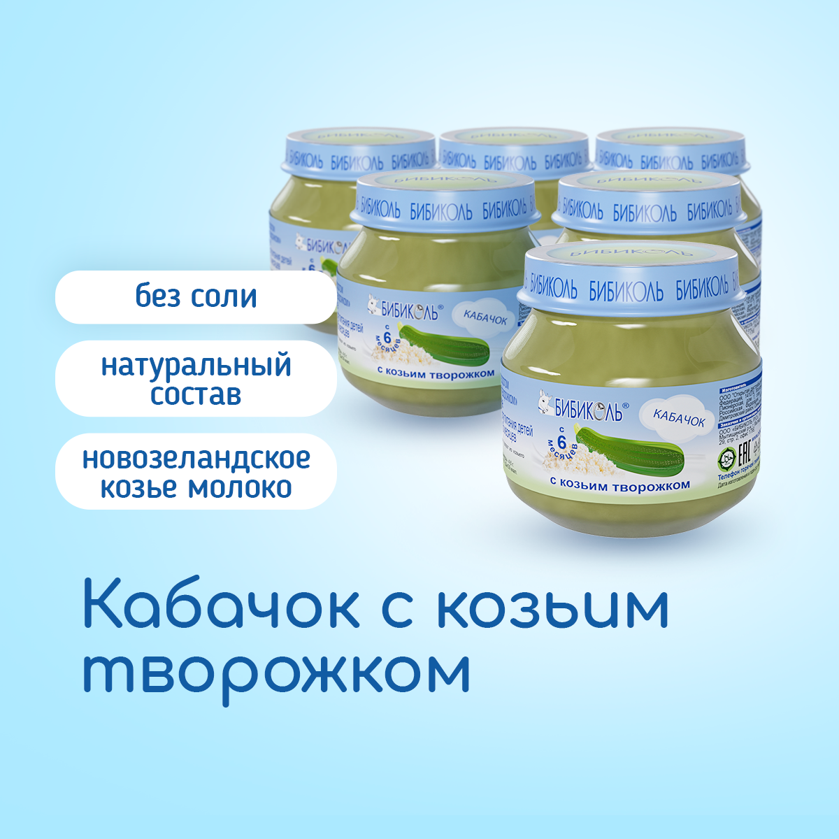 Купить Пюре бибиколь овощное «Кабачок с козьим творожком» для детей с 6 месяцев 6*80гр