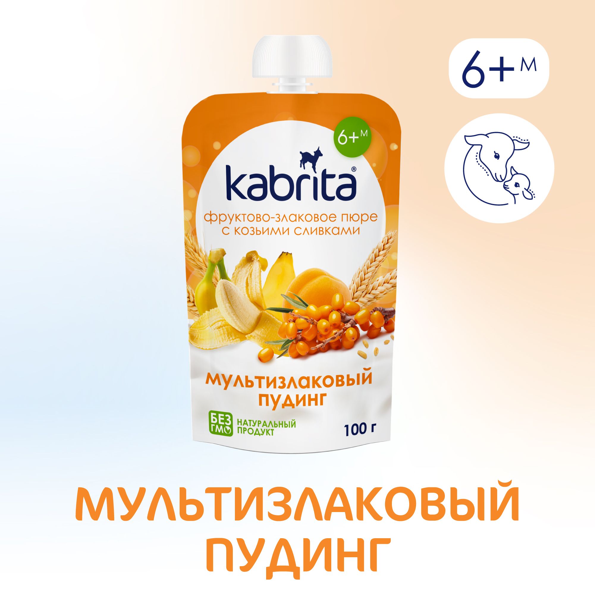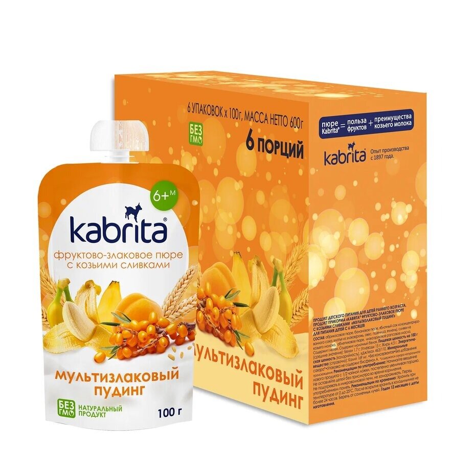 Купить Kabrita Kabrita® фруктово-злаковое пюре с козьими сливками «Мультизлаковый пудинг» с облепихой, 100 г, 6 шт.
