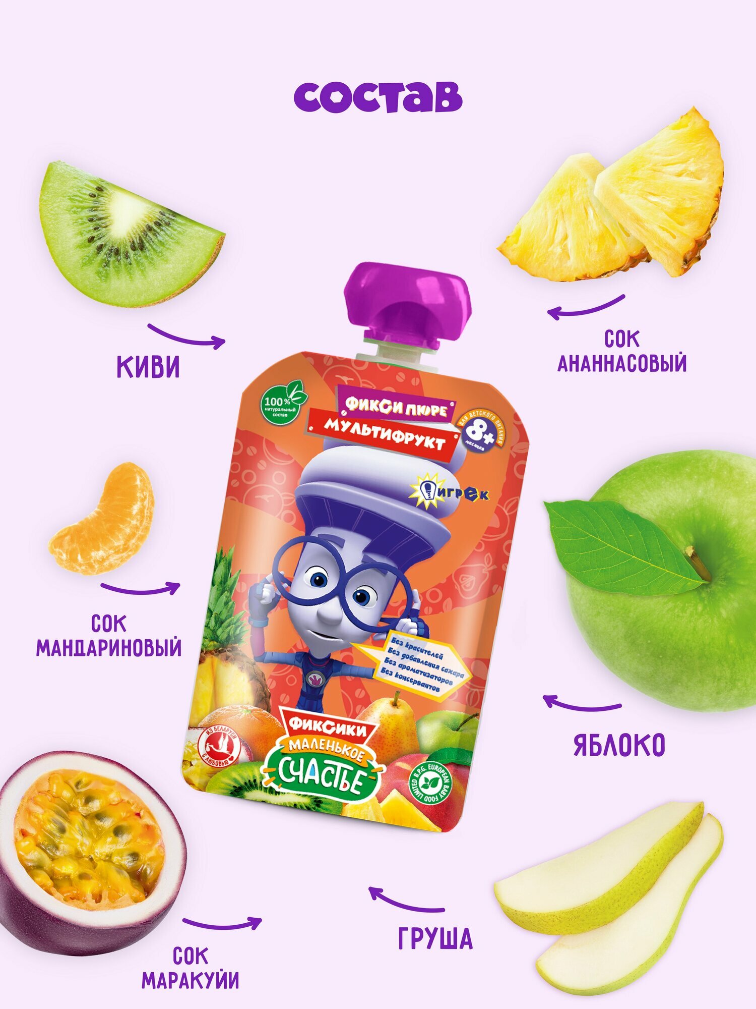 Пюре фруктовое Фиксики Мультифрукт с 8 месяцев 90 г 12 шт интересное: