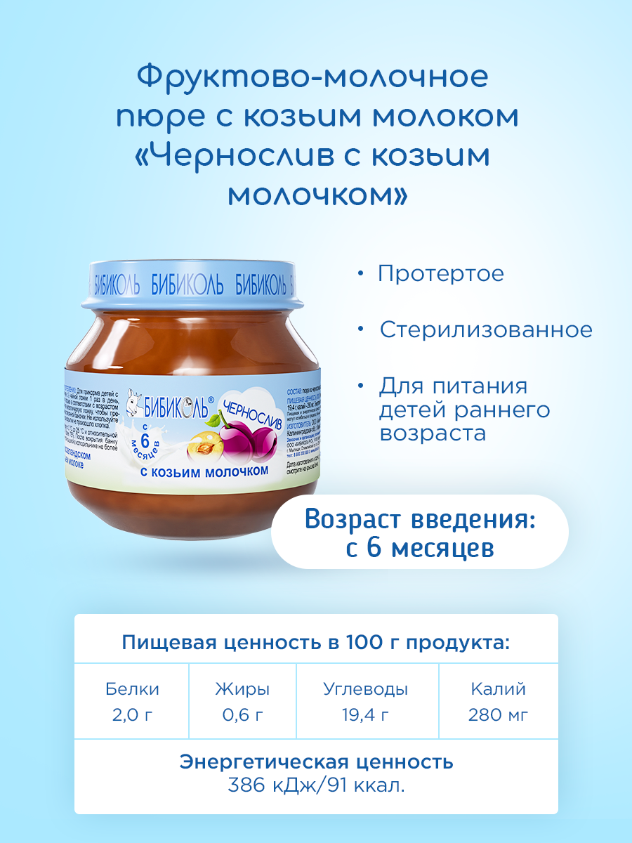 Фруктово-молочное пюре «Чернослив с козьим молочком» 6*80гр. интересное: