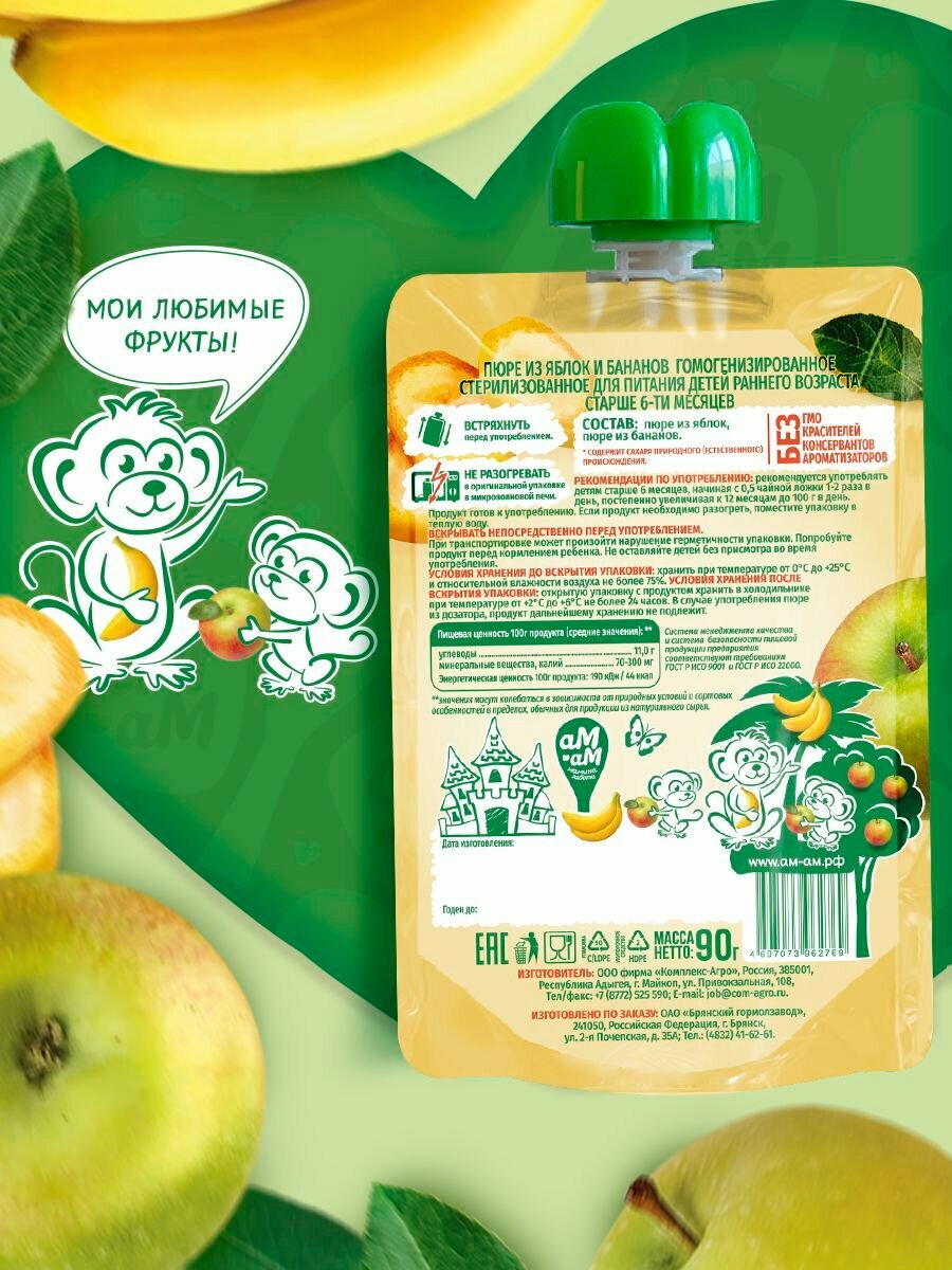 Пюре детское фруктовое "Яблоко-банан" интересное: