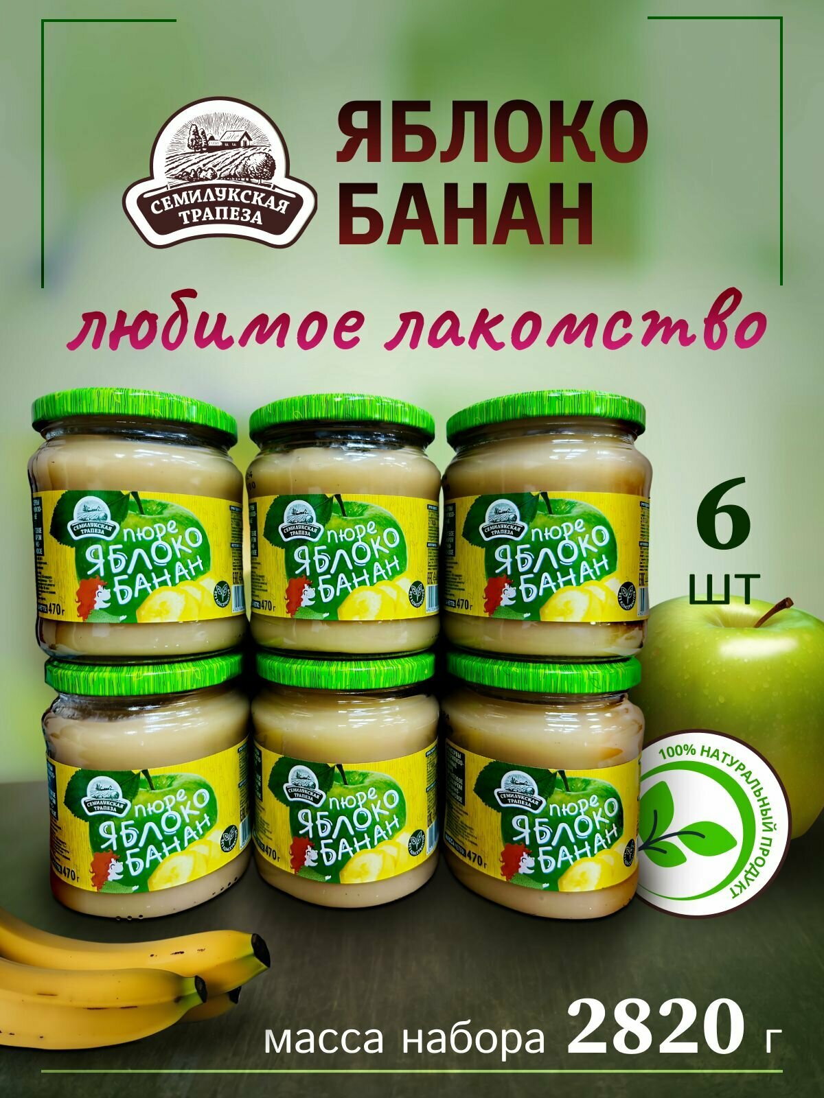 Пюре яблочно-банановое 6 банок по 470гр. Семилукская трапеза интересное: