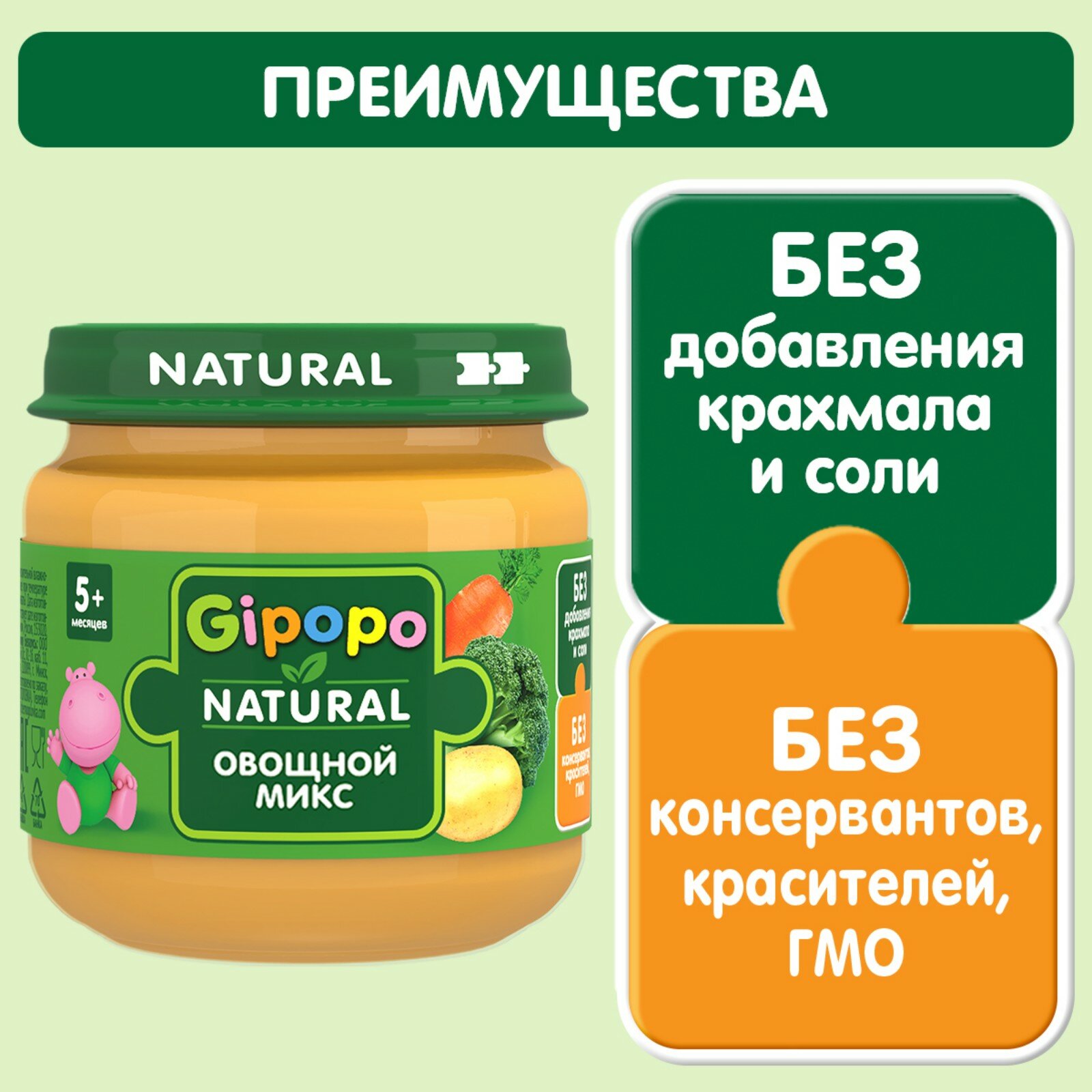 Ниже Вы можете прочитать отзывы на Детское пюре Gipopo "Овощной микс", для 5-месячных, 80г, 6 штук, ознакомится с подробными характеристиками, посмотреть интересные обзоры и фотографии на Детское пюре Gipopo "Овощной микс", для 5-месячных, 80г, 6 штук.