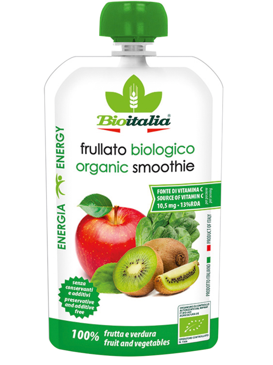 Купить Детское пюре Bioitalia (Биоиталия) из яблока, киви и шпината, 6 шт. по 120 гр.