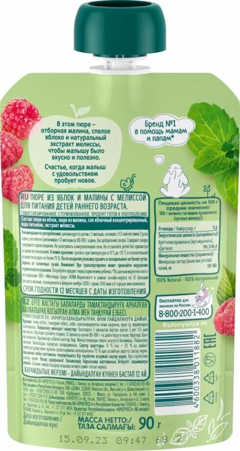 Пюре детское фруктовое ФрутоНяня из яблок, малины и мелиссы, 90 г 6 шт интересное:
