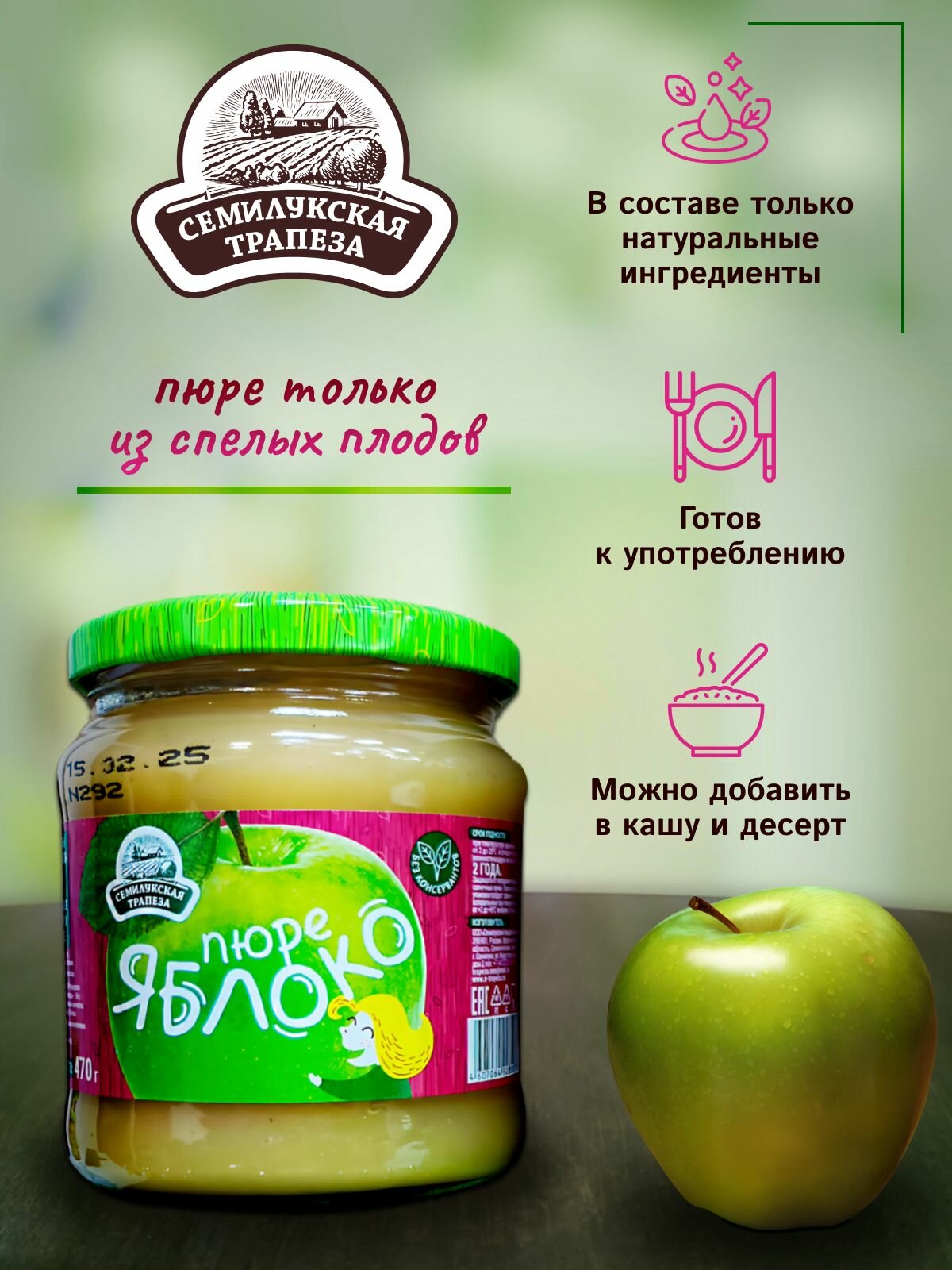 Купить Пюре Яблочное 6 банок по 470гр. Семилукская трапеза Натуральный состав
