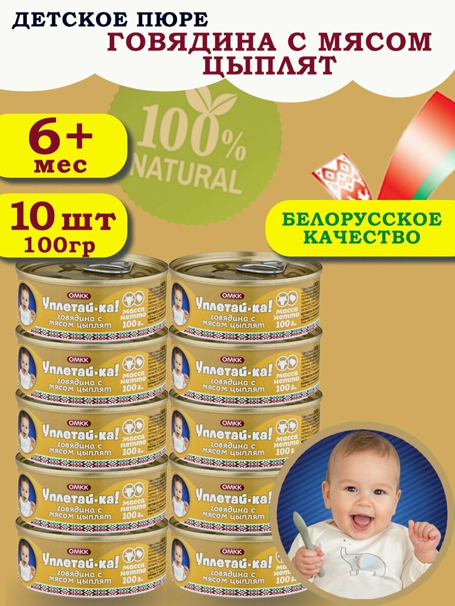 Купить Пюре детское мясное Уплетай-Ка! говядина с мясом цыплят 100гр 10 шт