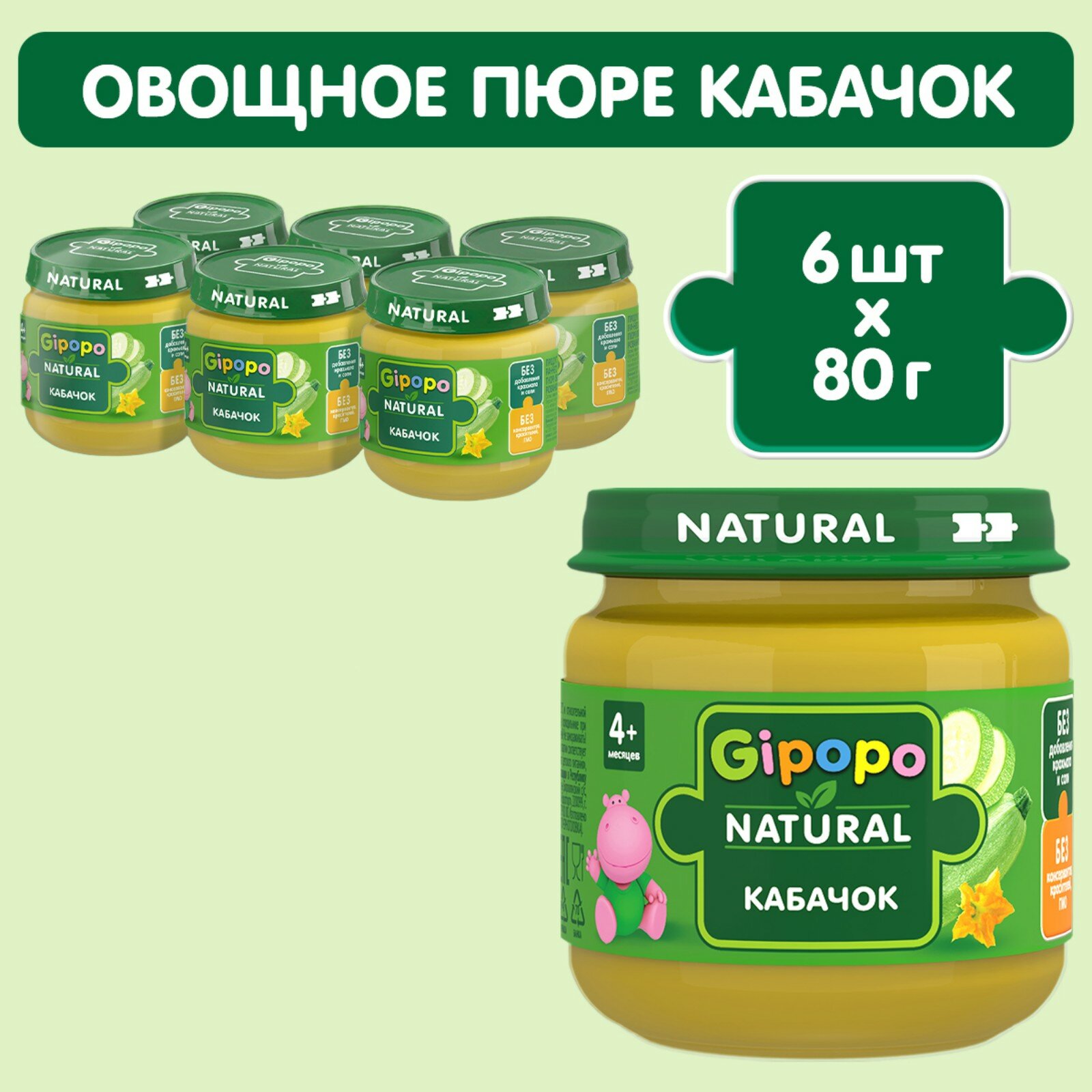 Купить Пюре Gipopo "Кабачок", для первого прикорма, без добавок, 80г, 6шт