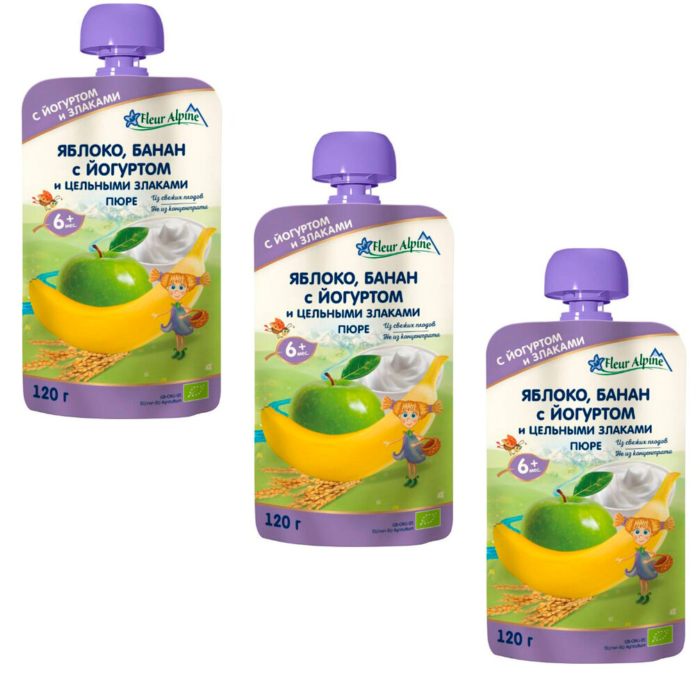 Купить Пюре Fleur Alpine яблоко банан с йогуртом с 6 мес, 120 гр, 3 шт.