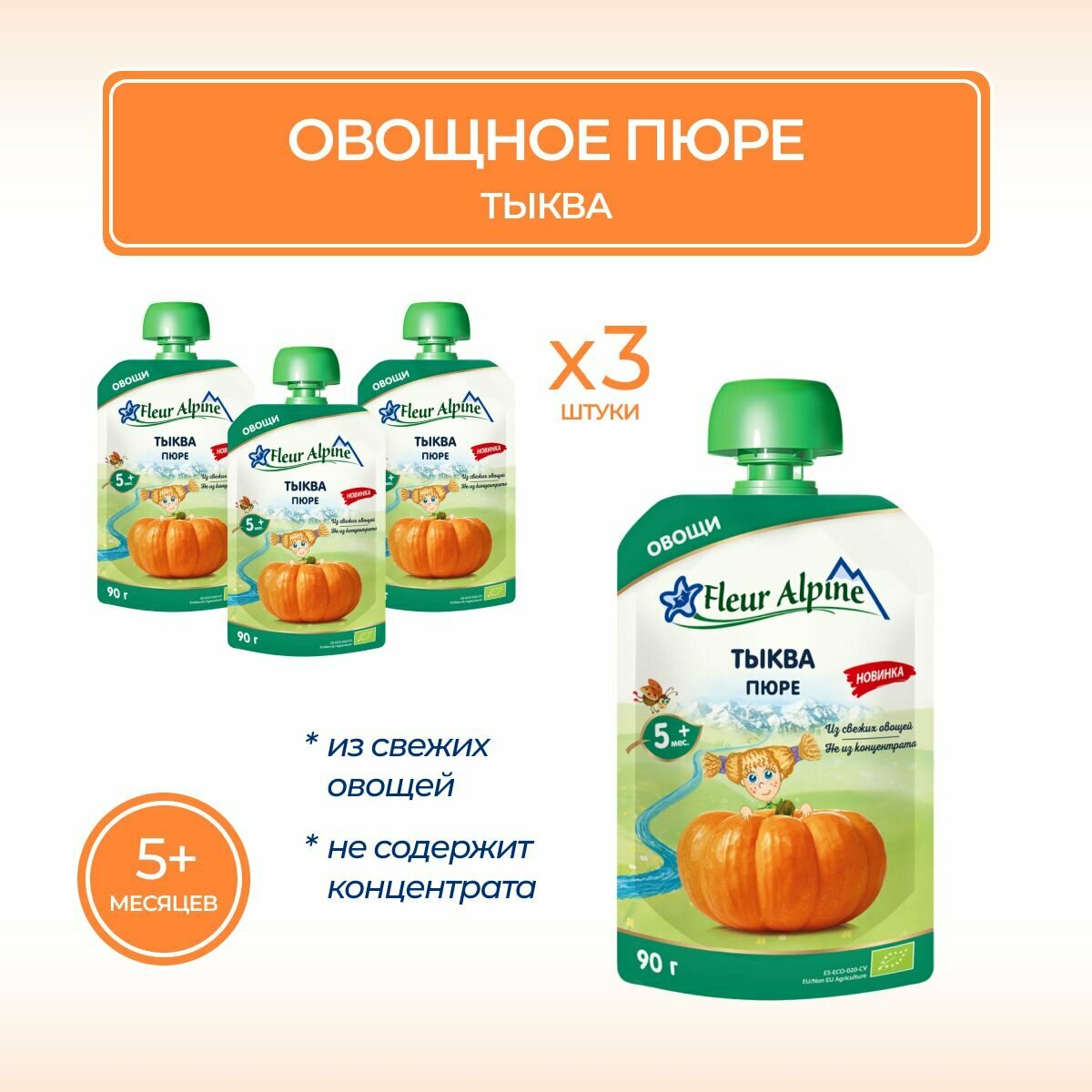 Купить Fleur Alpine пюре овощное "Тыква" с 5 мес, 90 гр, 3 шт.