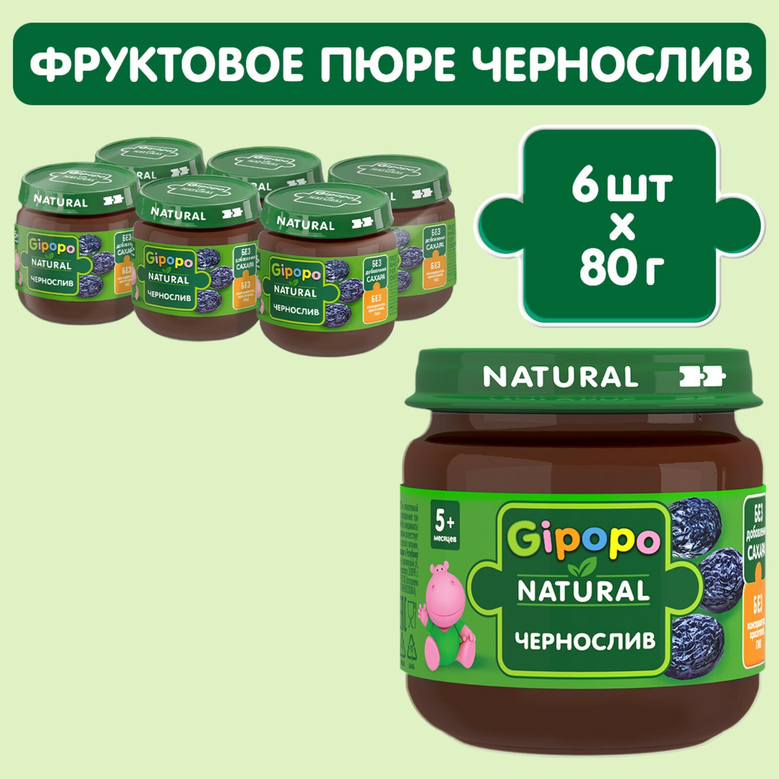 Детское пюре Gipopo - "чернослив", 5 месяцев, 80 грамм, 6 штук. интересное:
