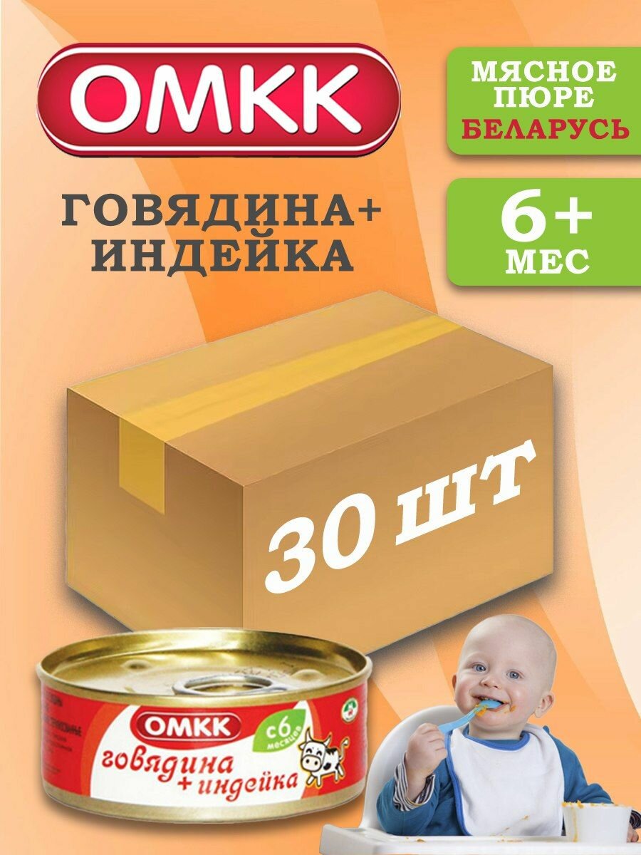 Пюре детское мясное Говядина + индейка 100 гр 30 шт интересное: