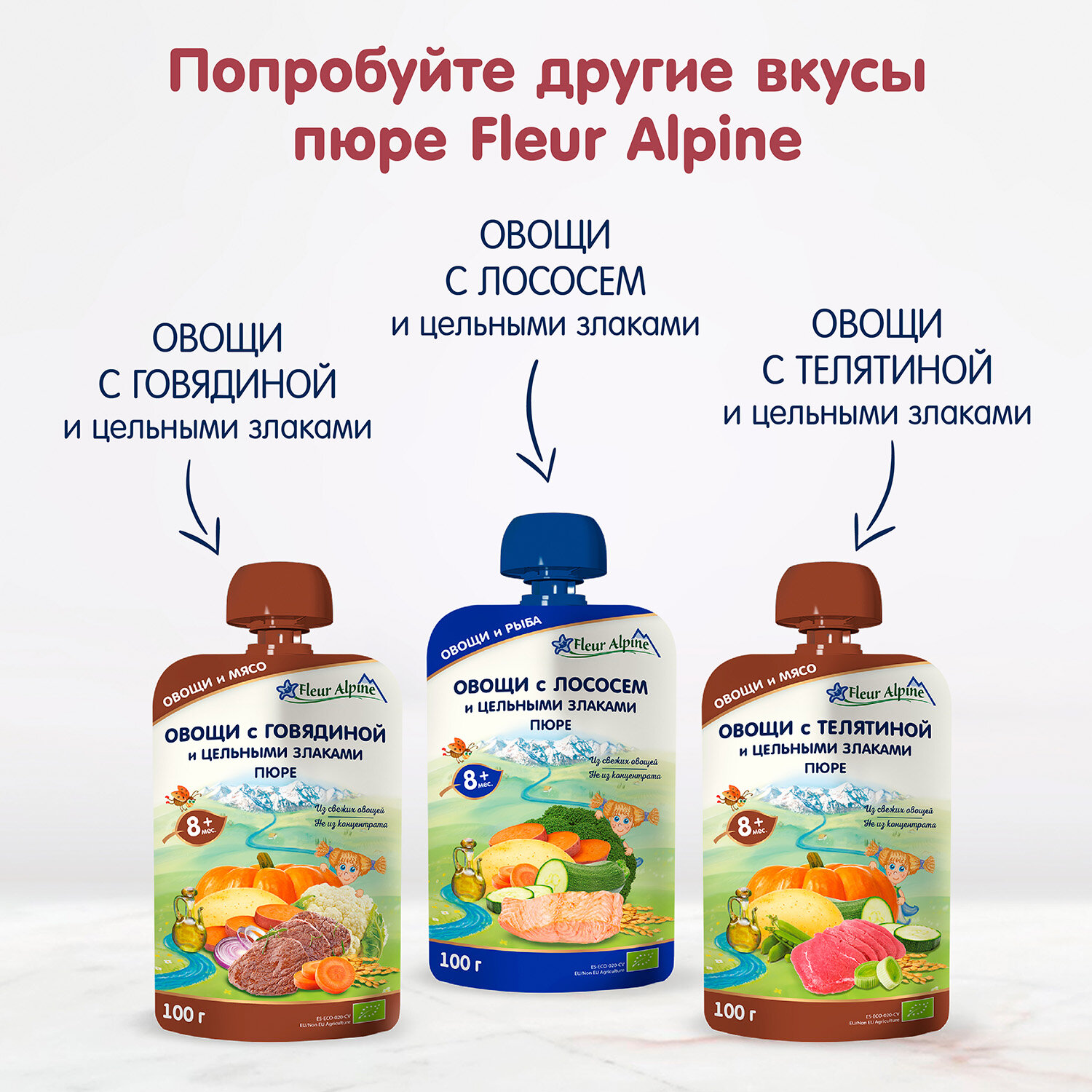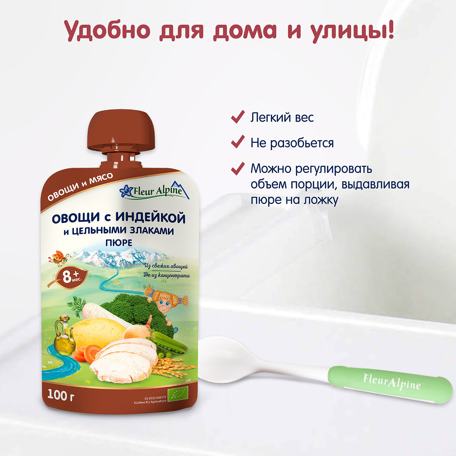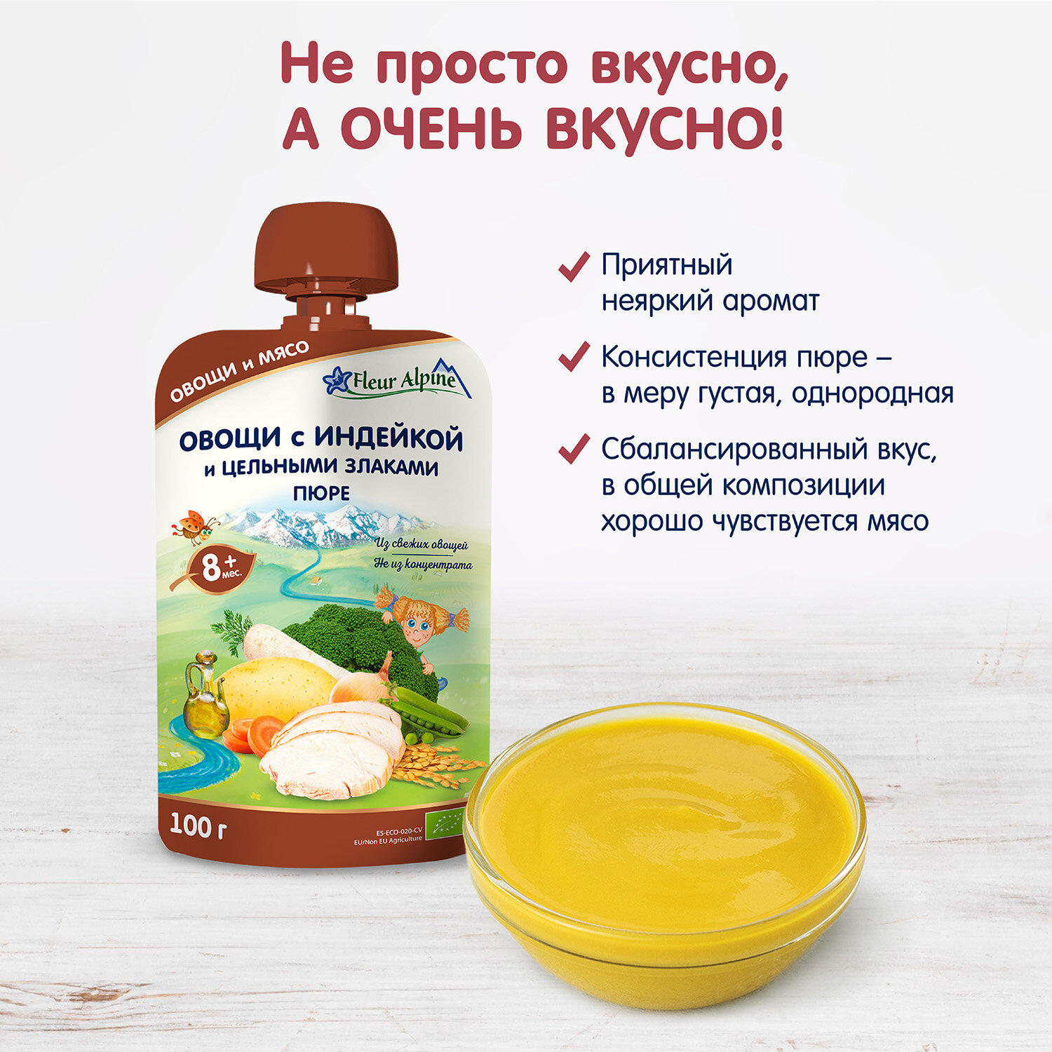Пюре Fleur Alpine «Овощи с индейкой и цельными злаками», с 8 месяцев, 100 г (6 штук) интересное: