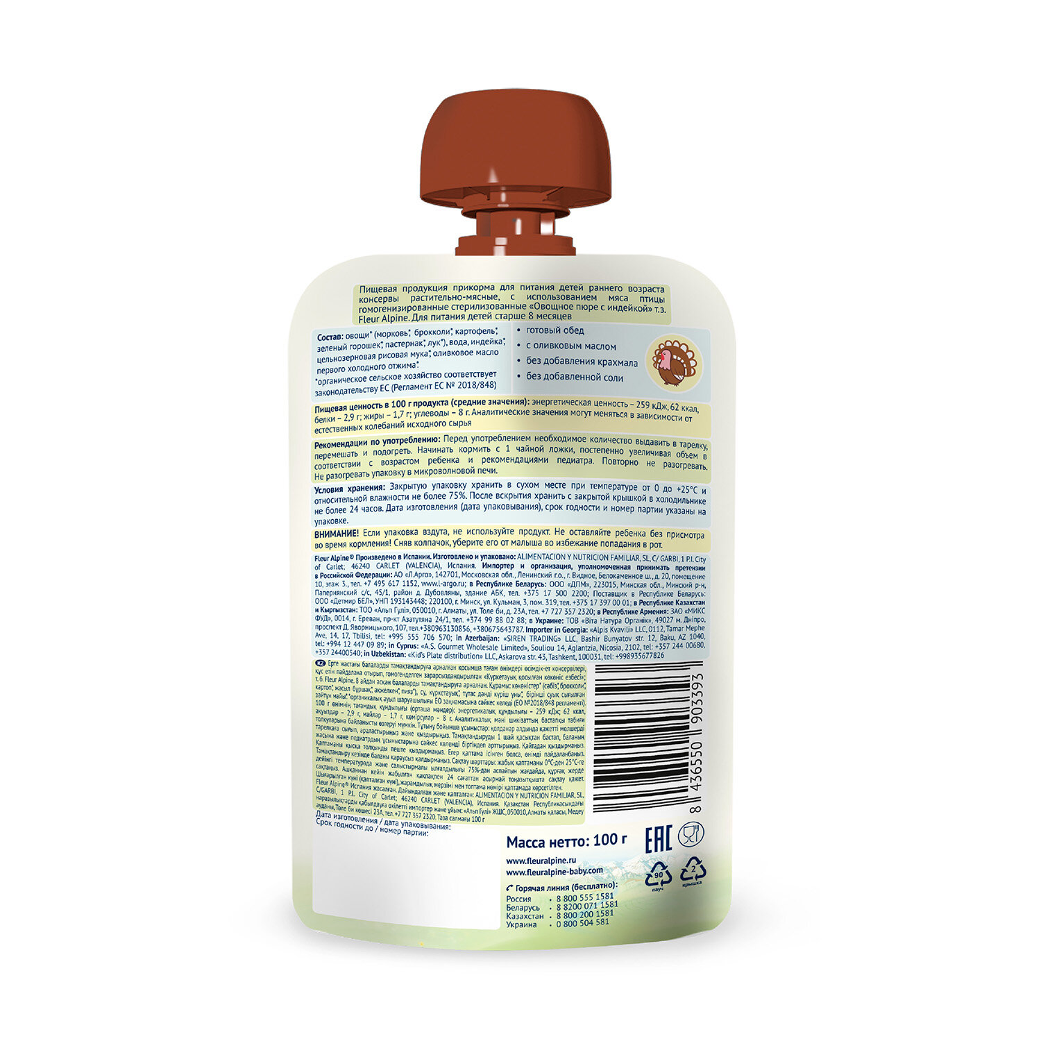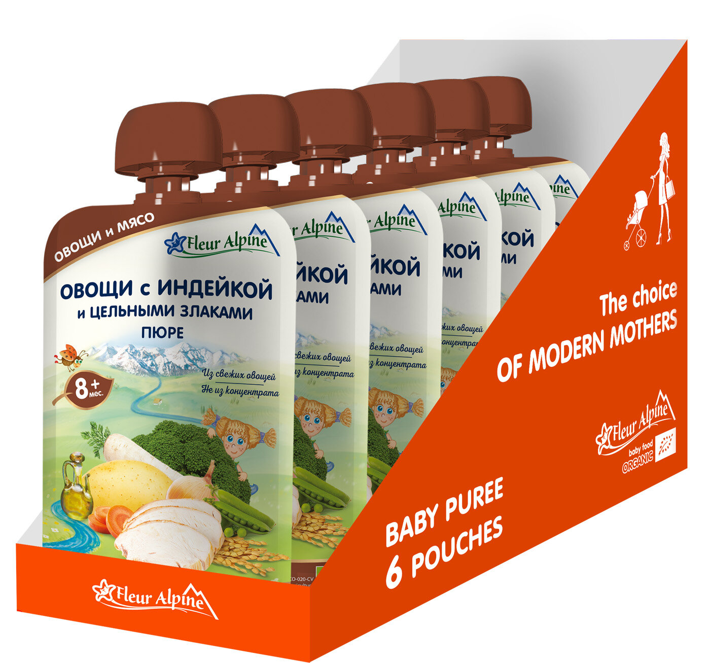 Купить Пюре Fleur Alpine «Овощи с индейкой и цельными злаками», с 8 месяцев, 100 г (6 штук)