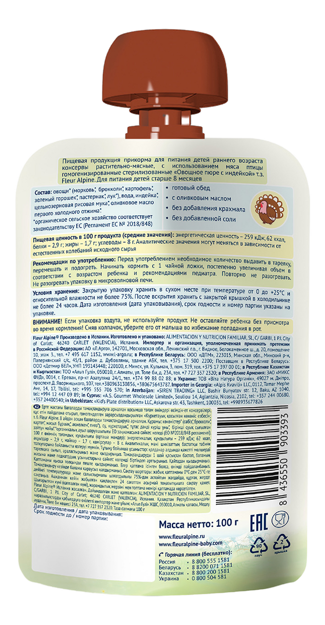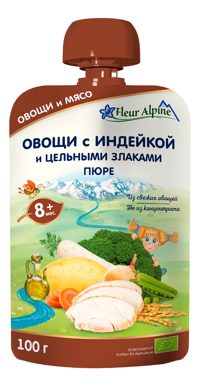 Пюре Fleur Alpine Овощи с индейкой и цельными злаками с 8 месяцев 100 г интересное: