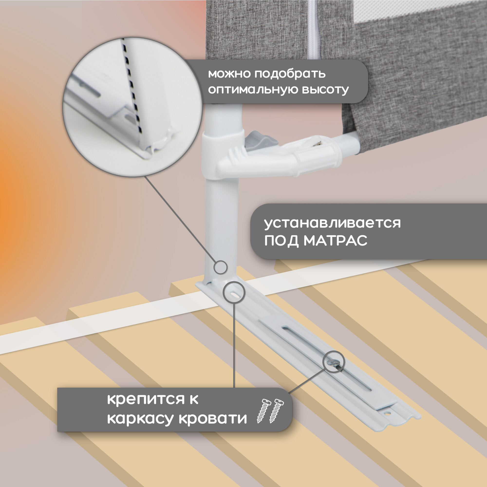 Купить Барьер защитный для кровати Amarobaby Linear, серый, 180 см.