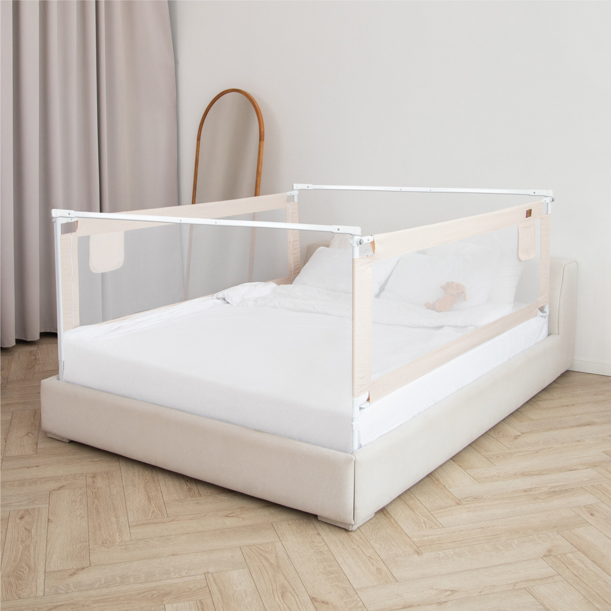 Барьер защитный для кровати Amarobaby Linear, бежевый, 200 см.