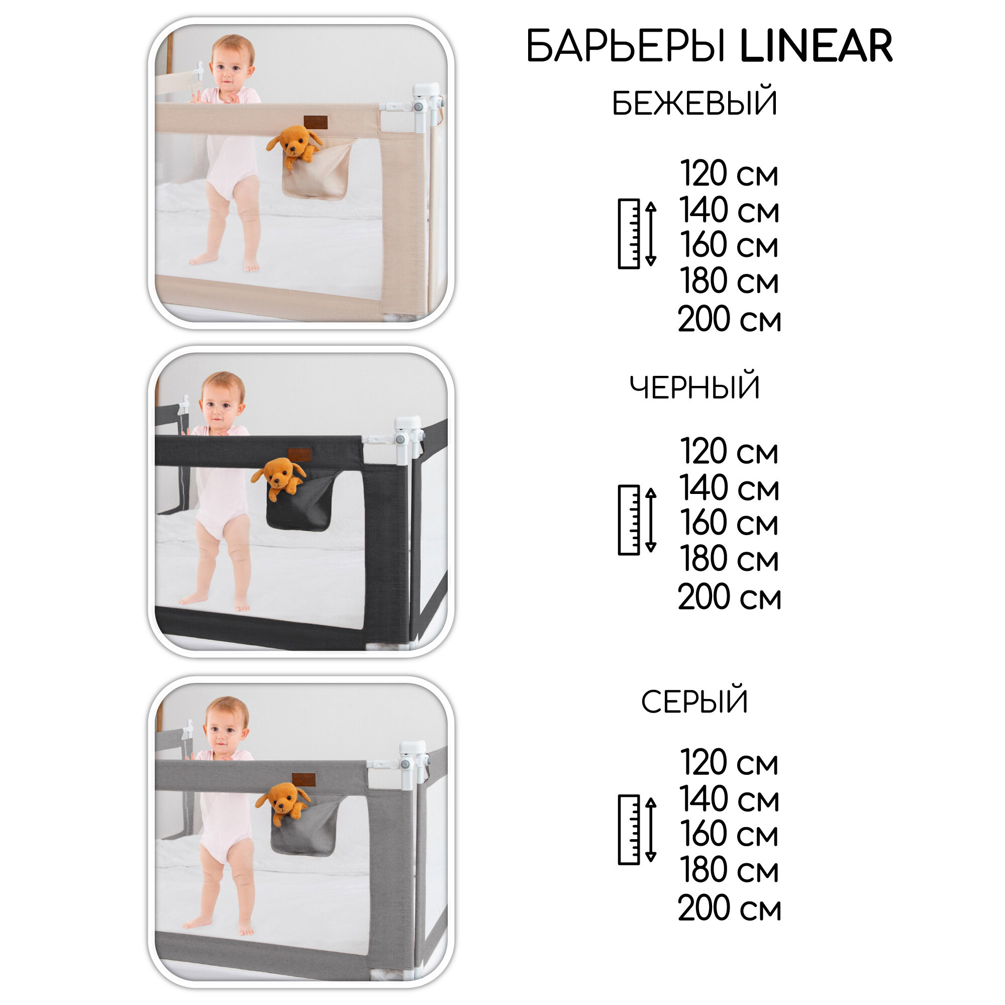 Барьер защитный для кровати Amarobaby Linear, бежевый, 180 см.