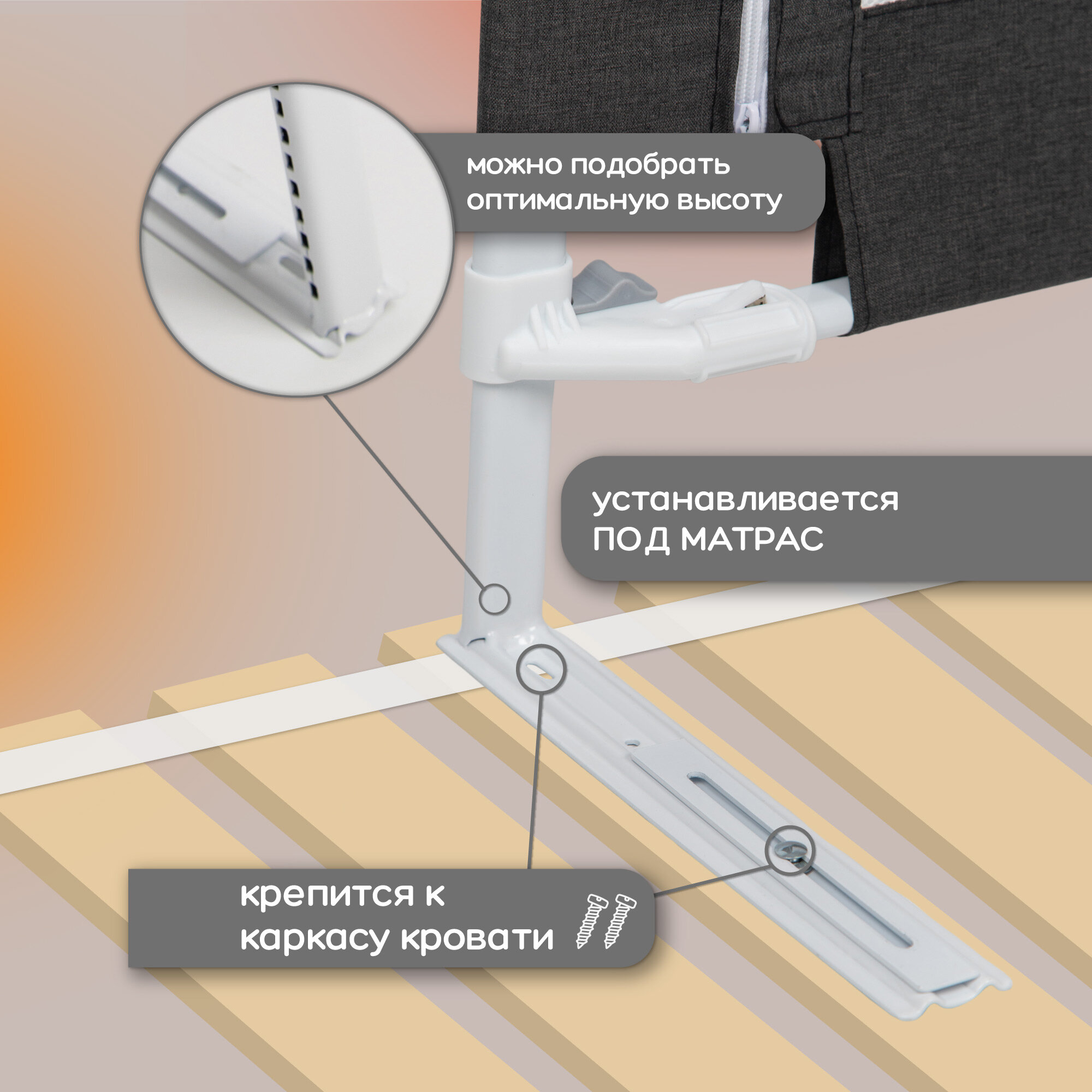 Барьер защитный для кровати Amarobaby Linear, серый, 200 см.