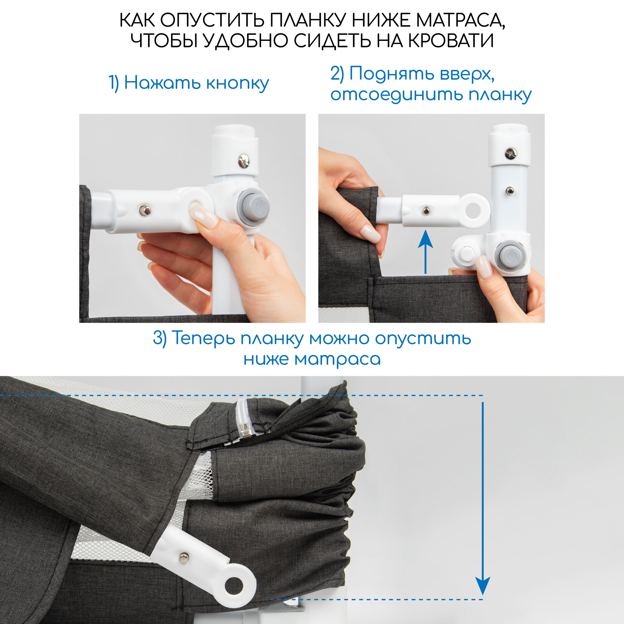 Барьер защитный для кровати Amarobaby Linear, серый, 120 см.