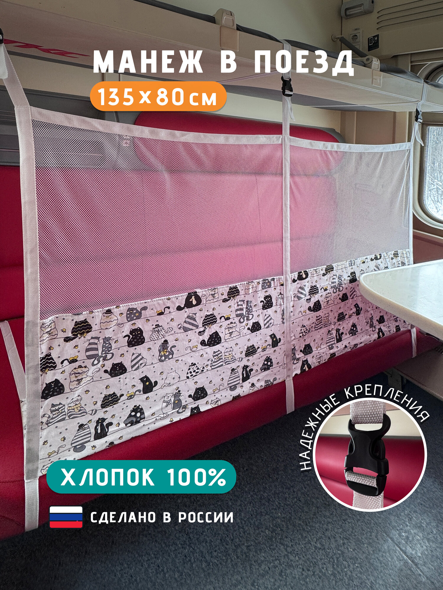 Манеж сетка для поезда 135х90 см Котики на белом интересное: