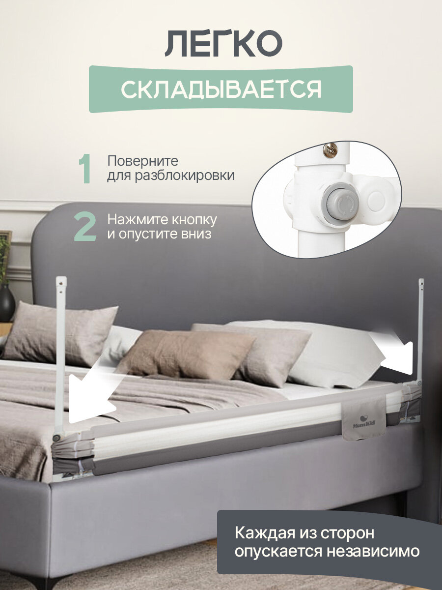 Барьер защитный для кровати от падений MOMKID, бортик в кроватку для новорожденных и малышей, молочно-серый, 2 м