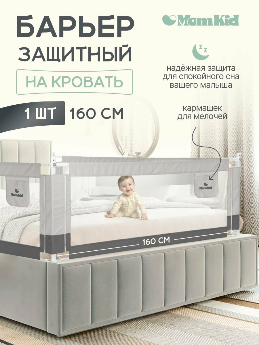 СохранитьБарьер защитный для кровати от падений MOMKID, бортик в кроватку для новорожденных и малышей, серый, 1,6 м интересное: