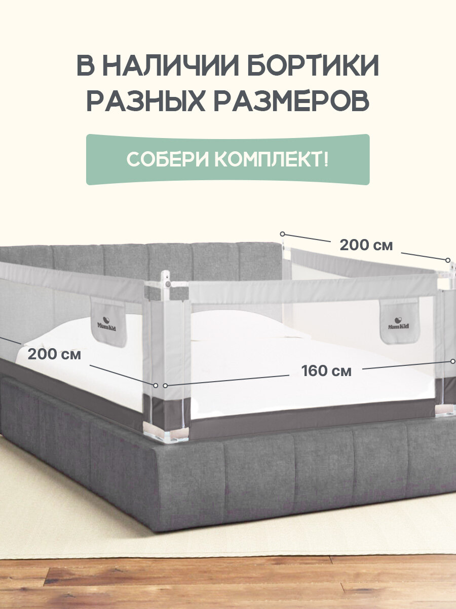 Барьер защитный для кровати от падений MOMKID, бортик в кроватку для новорожденных и малышей, серый, 2 м