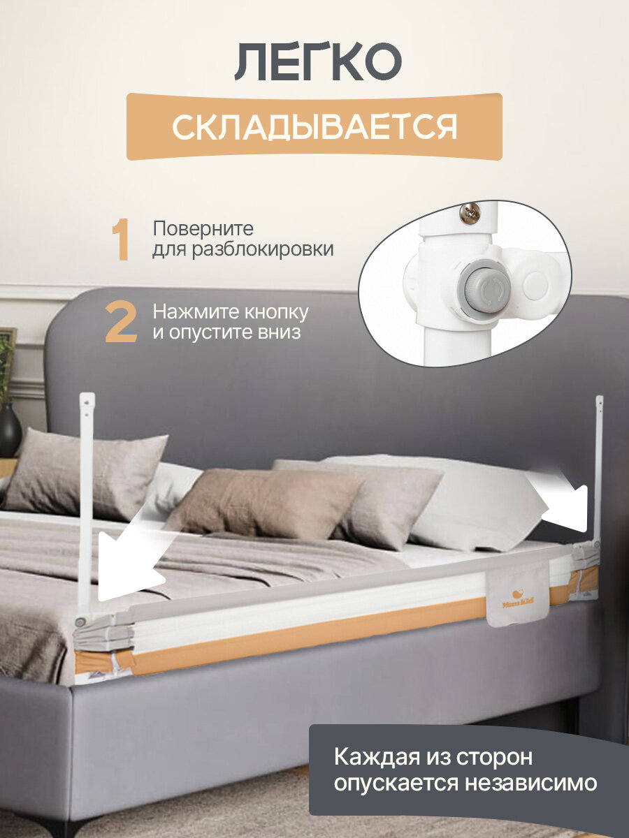 Барьер защитный для кровати от падений MOMKID, бортик в кроватку для новорожденных и малышей, молочно-серый, 2 м