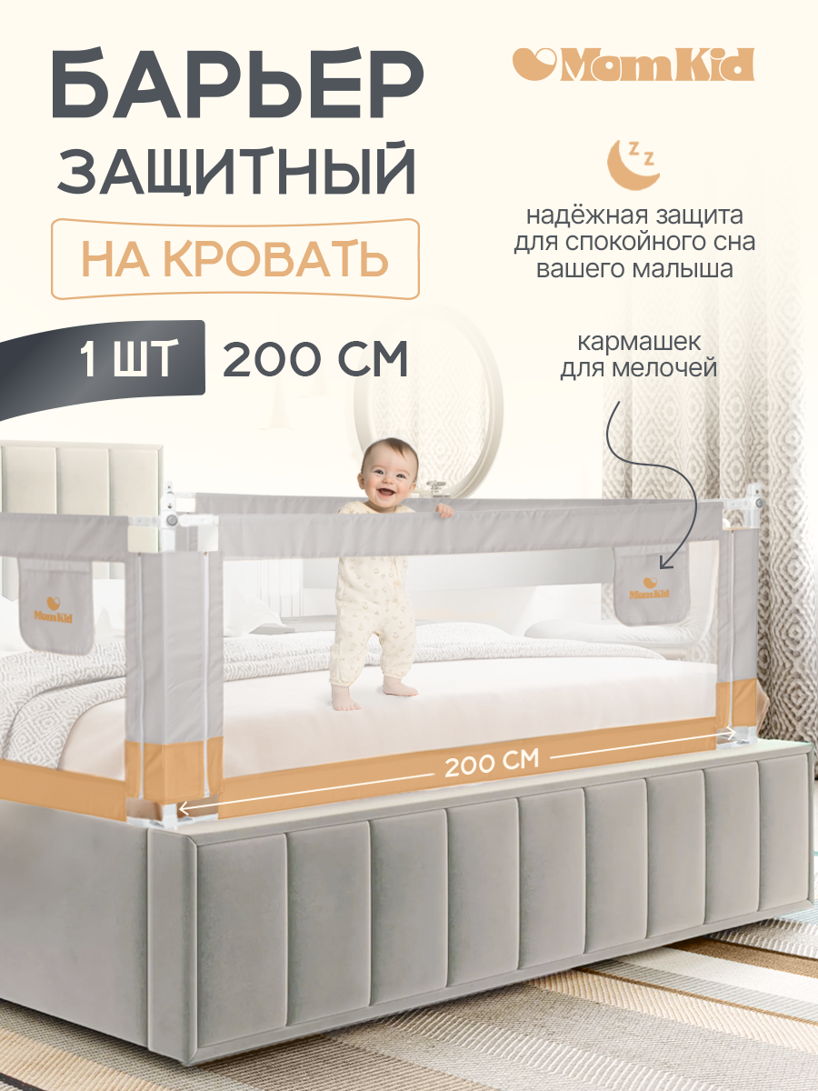 СохранитьБарьер защитный для кровати от падений MOMKID, бортик в кроватку для новорожденных и малышей, серо-бежевый, 2 м интересное: