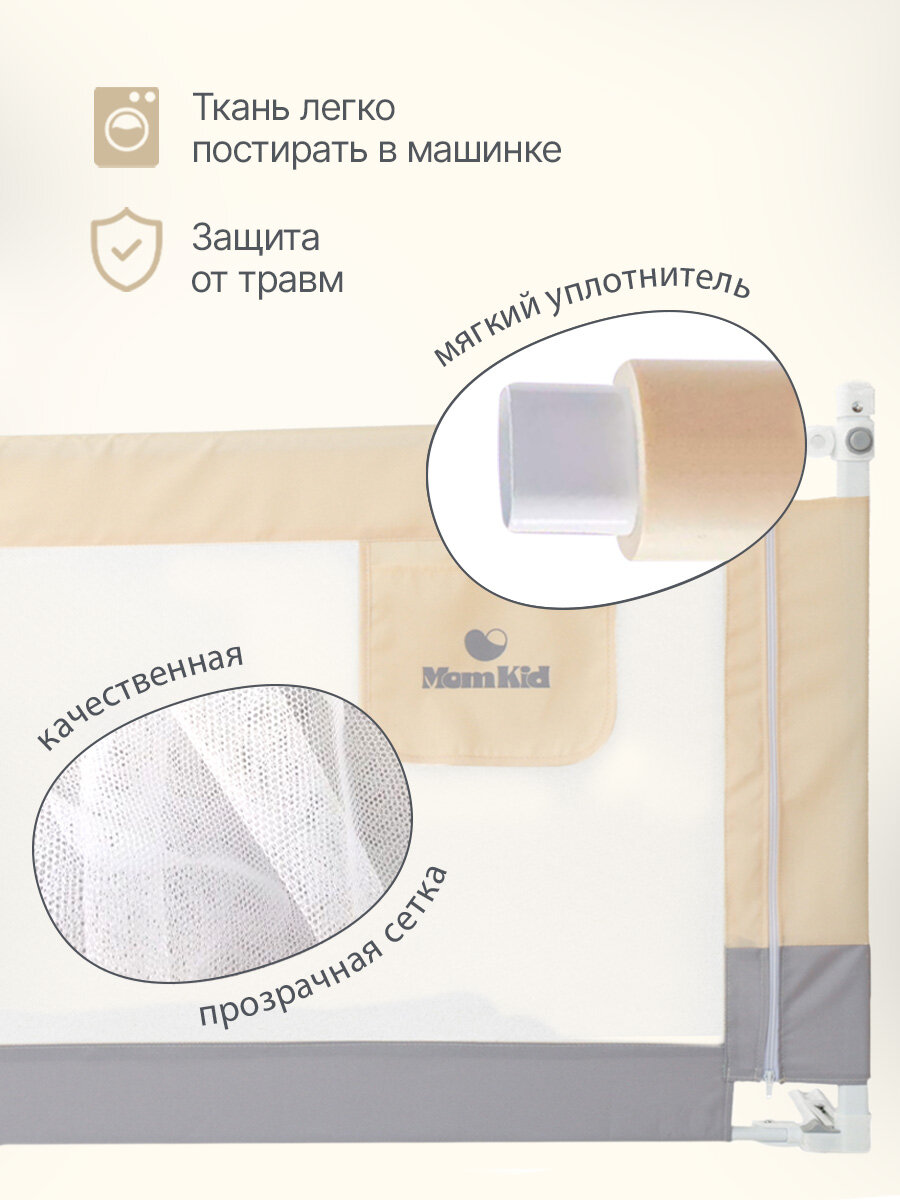 Барьер защитный для кровати от падений MOMKID, бортик в кроватку для новорожденных и малышей, серо-бежевый, 1,6 м