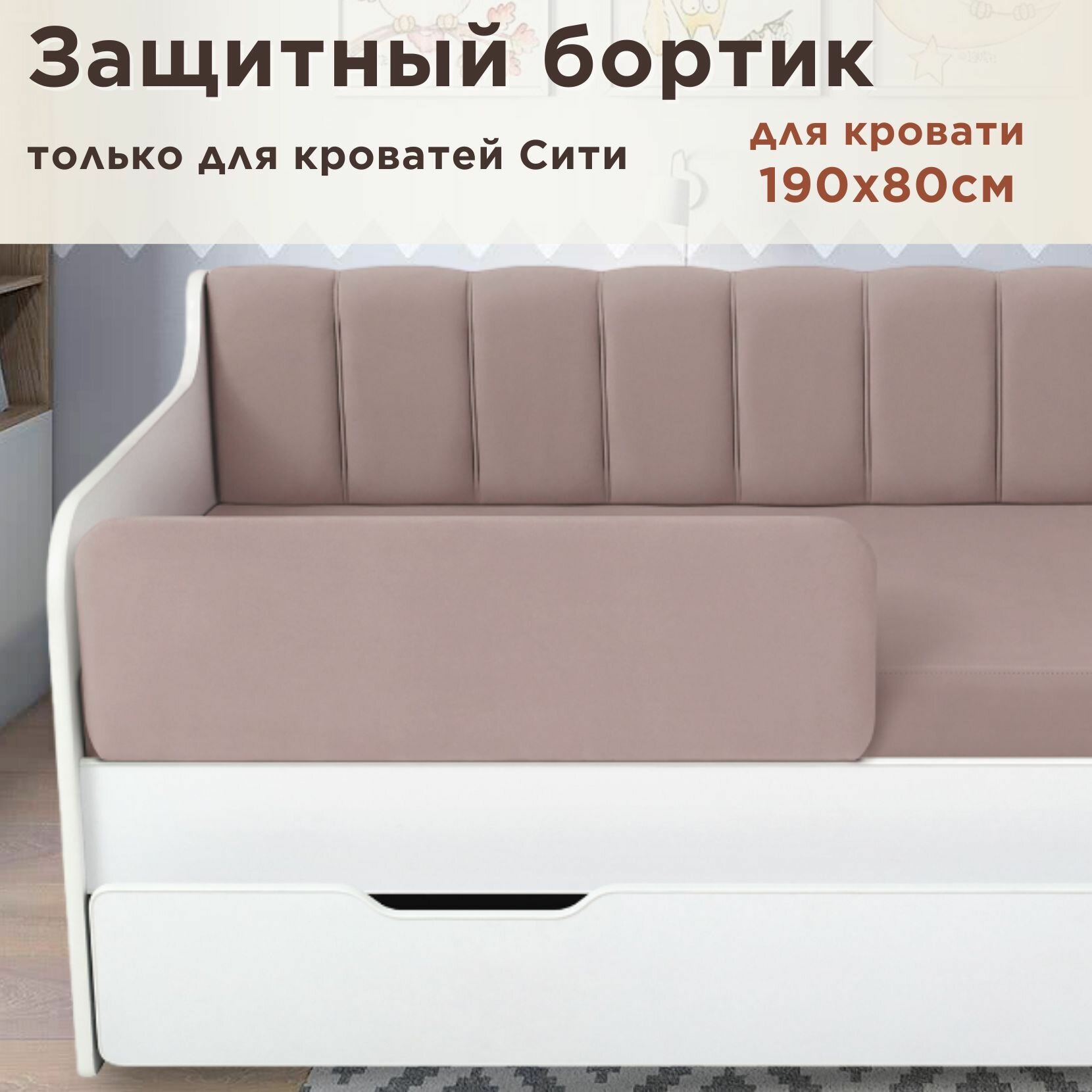 Защитный бортик для кровати Сити DarDav 190х80 velutto 01 бежевый