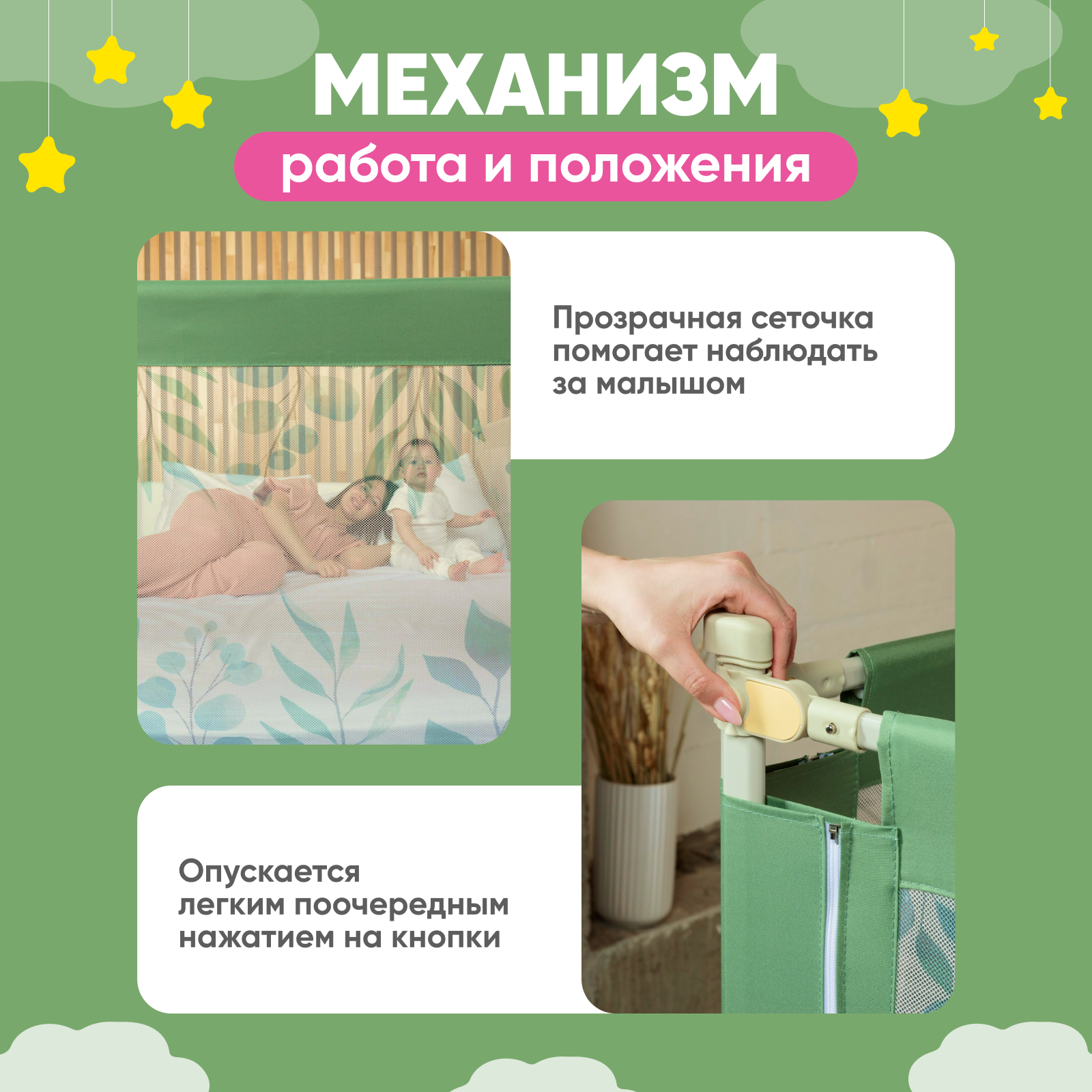 СохранитьБарьер защитный для кровати от падений, бортик в кроватку малыша 200 см SOLMAX, зеленый интересное: