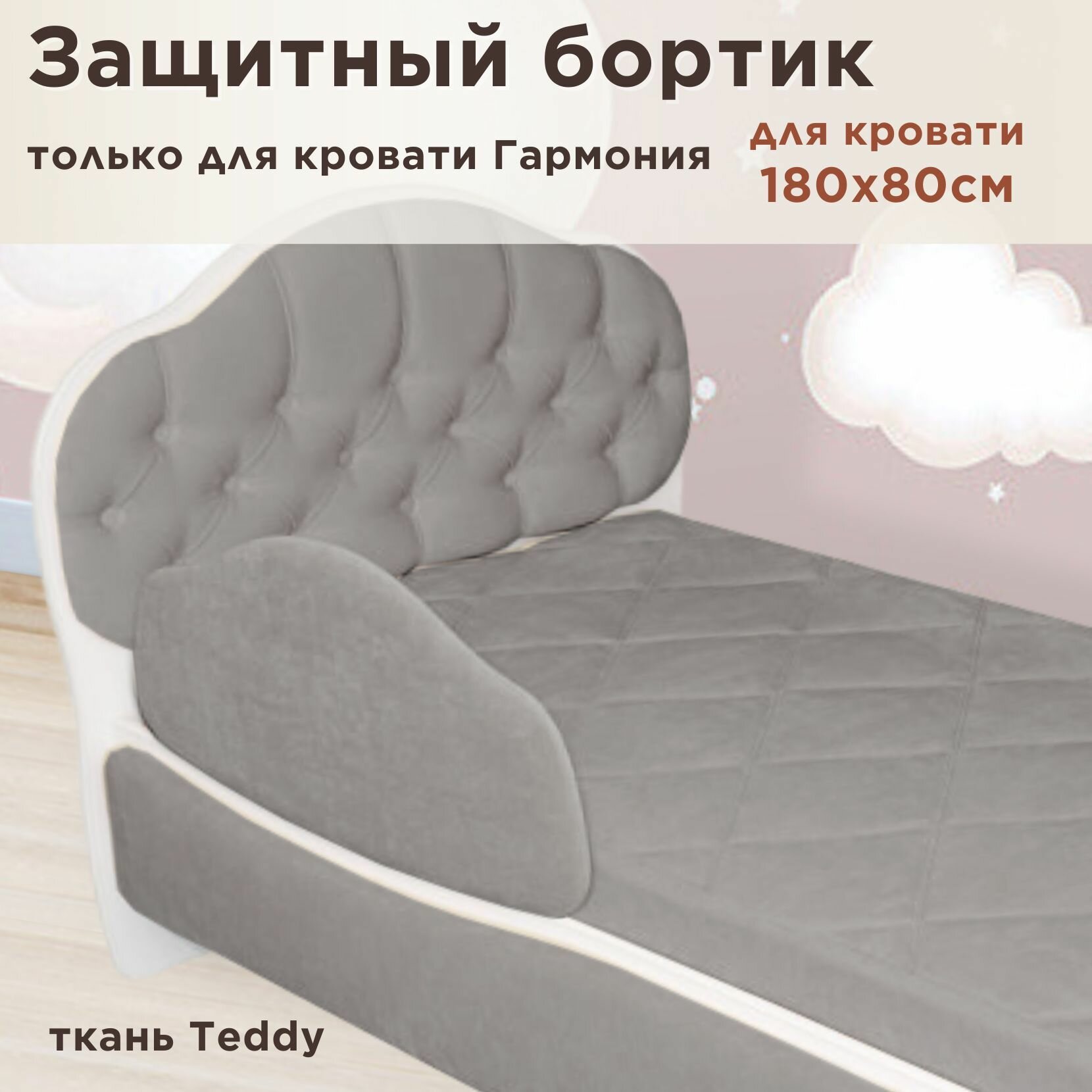 СохранитьЗащитный бортик для кровати DarDav Гармония 180х80 teddy 024 серый интересное: