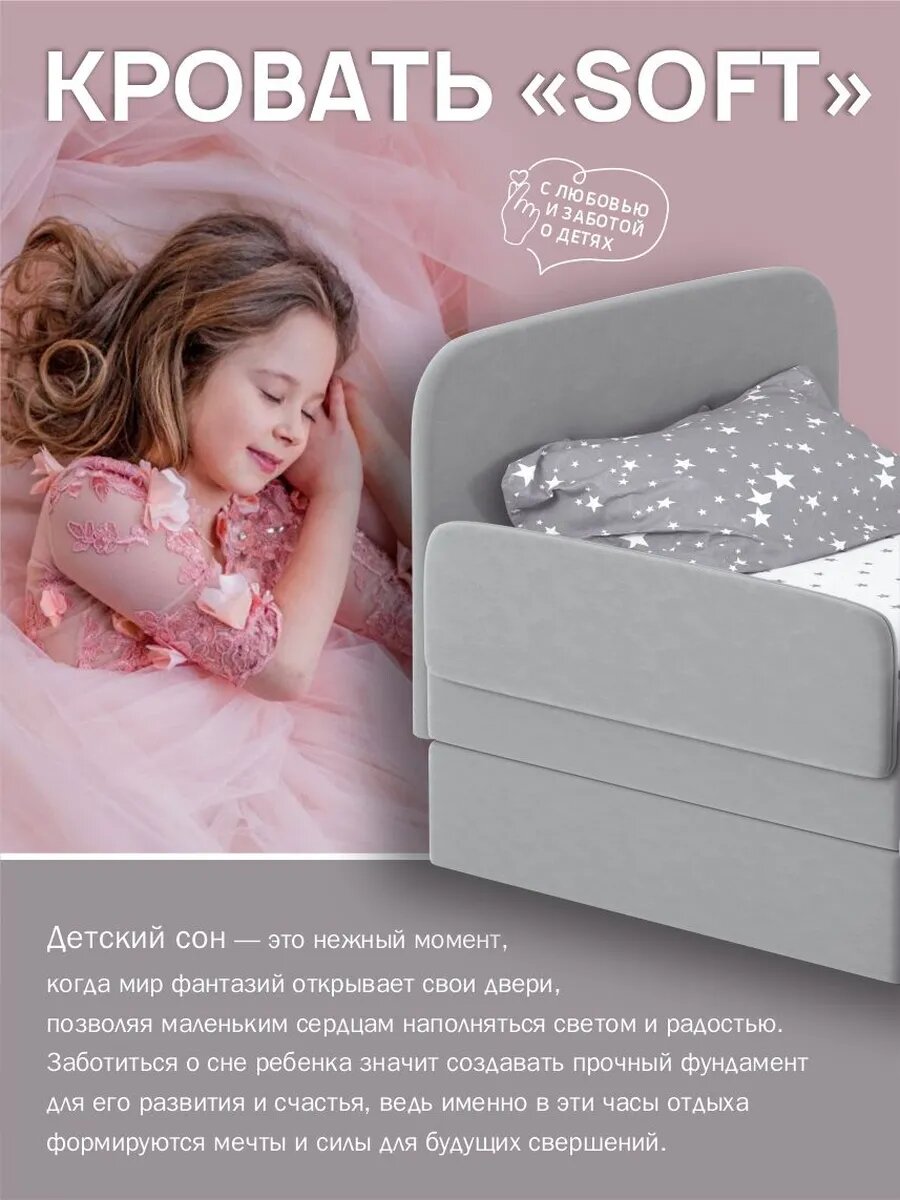 Бортик на кровать DobroMeb, мягкий 70х24 см, для безопасности ребенка, серый интересное: