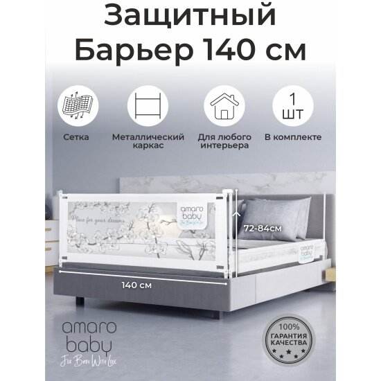 Барьер защитный для кровати Amarobaby safety of dreams серый 140 см