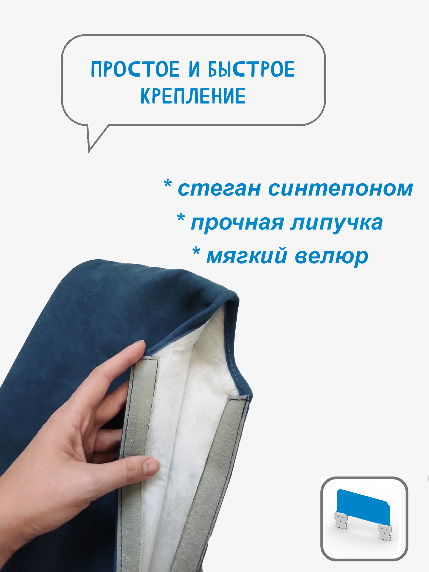 Бортик для кровати защитный от падения, съемный велюровый чехол
