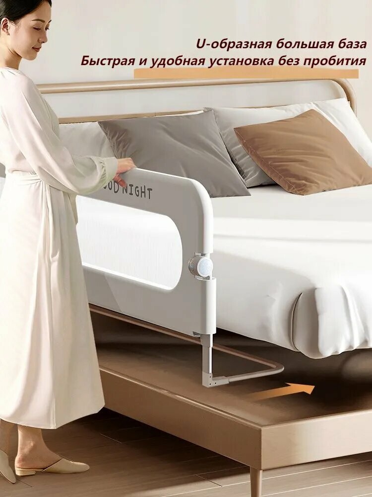 Защитный барьер для кровати 200 см, бортик для кровати от падения, детское ограждение от 0 до 10 лет, металл, (1 шт)
