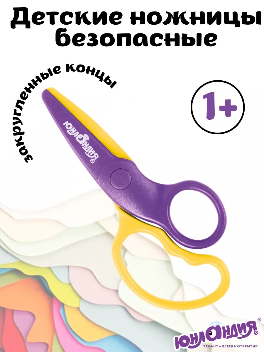 Ножницы детские Юнландия, безопасные, пластиковые лезвия, эргономичные ручки, длина 127 мм интересное: