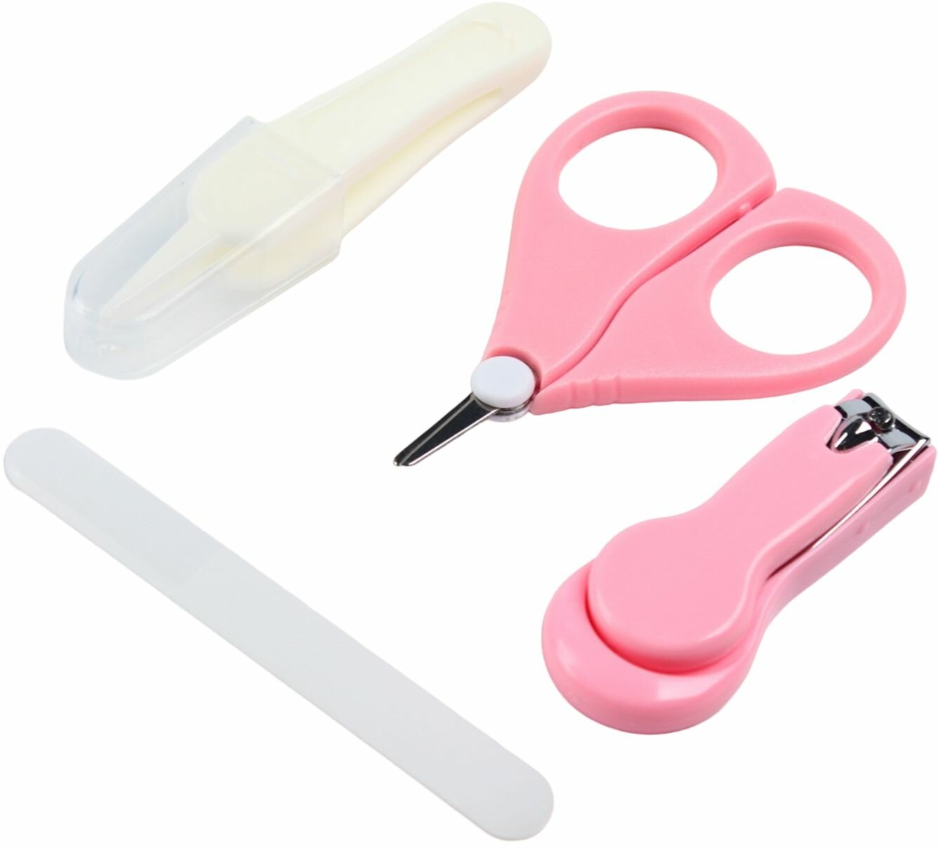 Купить Детский маникюрный набор из 4 предметов, ножницы с закругленными кончиками, книпсер кусачки и пилка для новорожденных, пинцет, цвет розовый