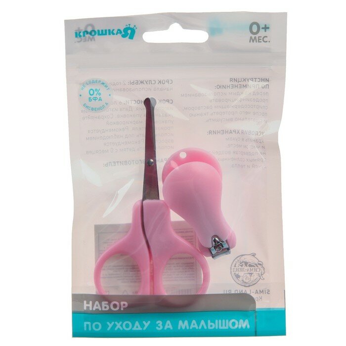 Купить Детский маникюрный набор, 2 предмета: ножницы, кусачки-книпсер, от 0 мес, цвет розовый, 2875764