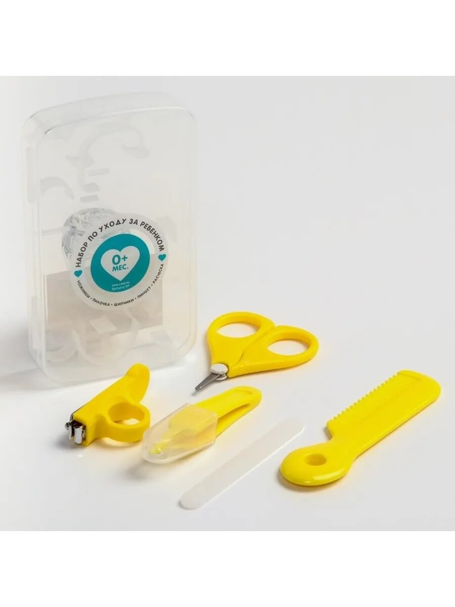 Крошка Я Набор по уходу за ребенком (расческа, пинцет, ножницы, книпсер, пилка), цвет желтый