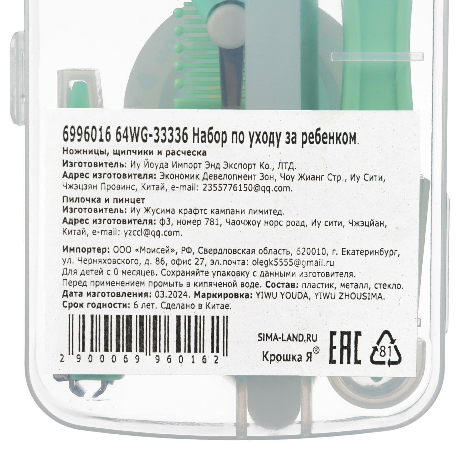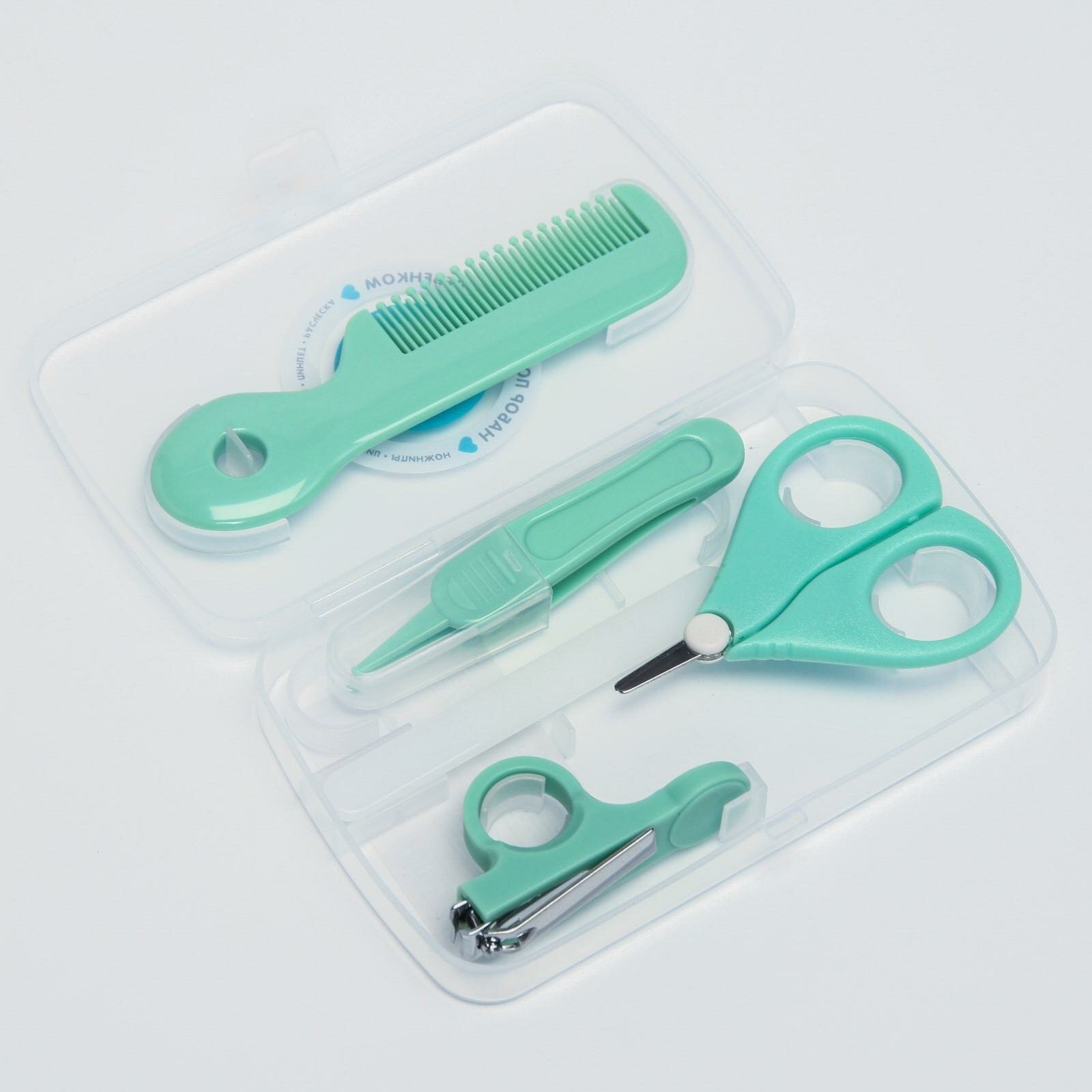 Набор по уходу за ребенком (расческа, пинцет, ножницы, книпсер, пилка), цвет зеленый интересное:
