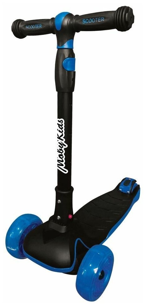 Трехколесный складной самокат Moby Kids Runner с широкой декой со светом синий 641279
