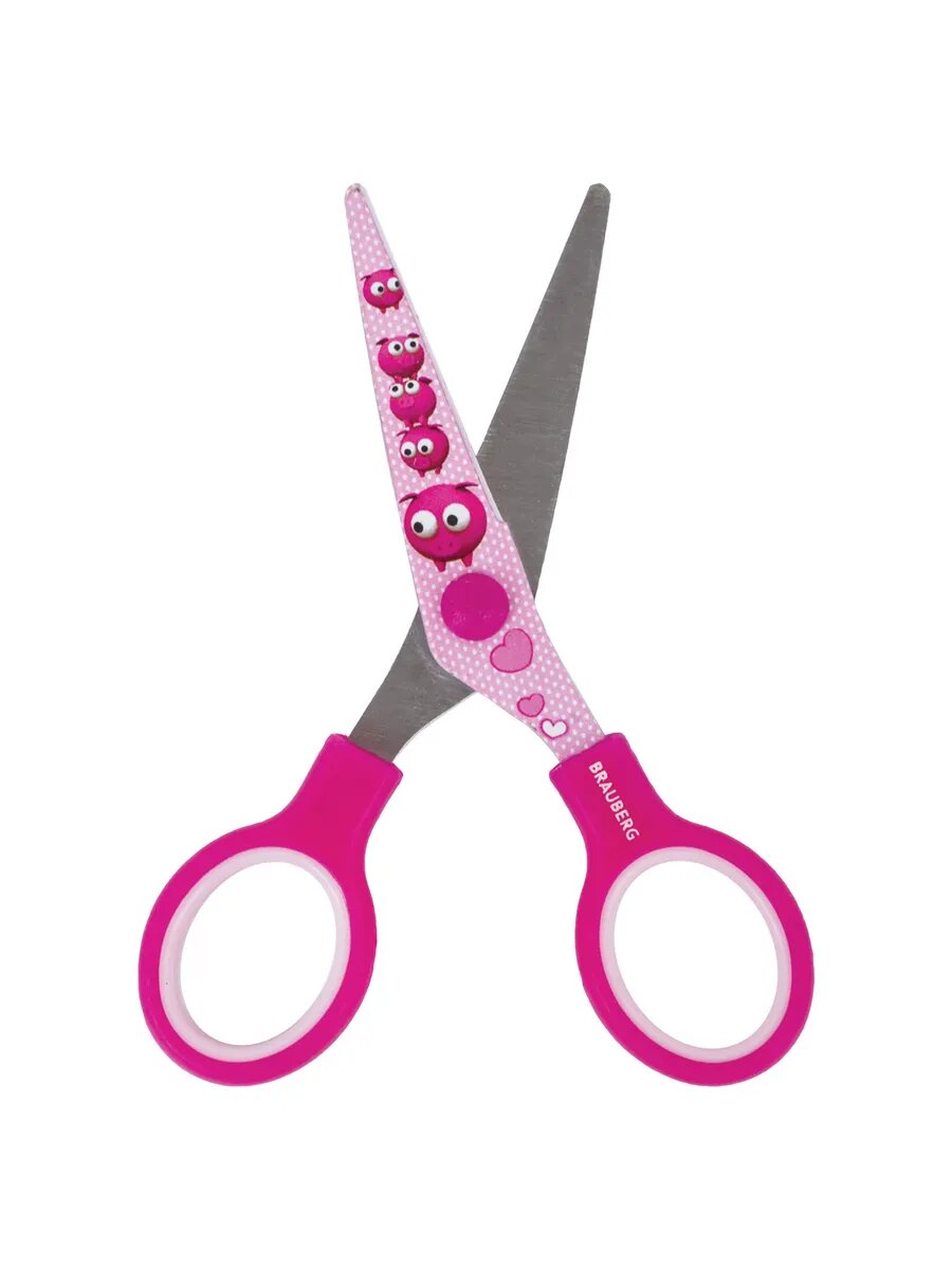 Ножницы 130 мм с цветной печатью "поросята", розовые, - 12шт интересное: