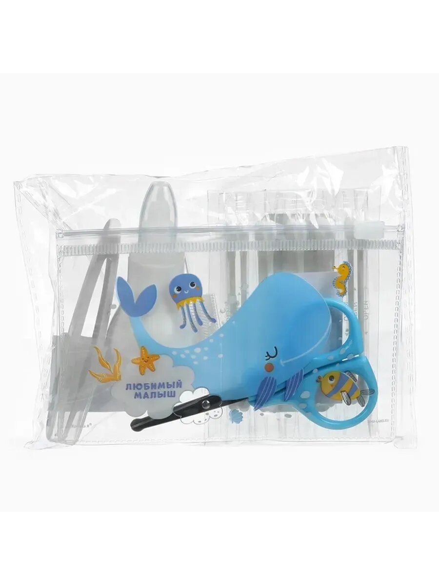 Крошка Я Набор по уходу за ребенком (расческа, пинцет, ножницы, книпсер, пилка), цвет желтый