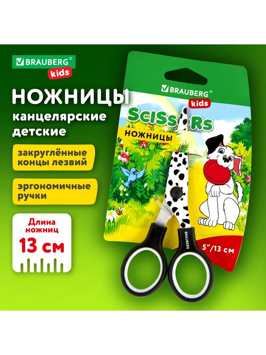 Ножницы 130 мм с цветной печатью "далматин", чёрно-бе - 12шт интересное: