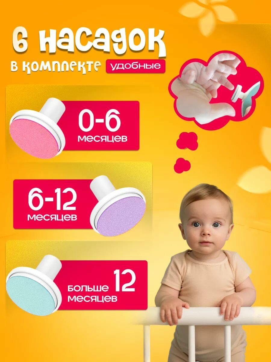 Триммер для ногтей - электрические маникюрные ножницы детские для новорожденных, 6 насадок, розовый