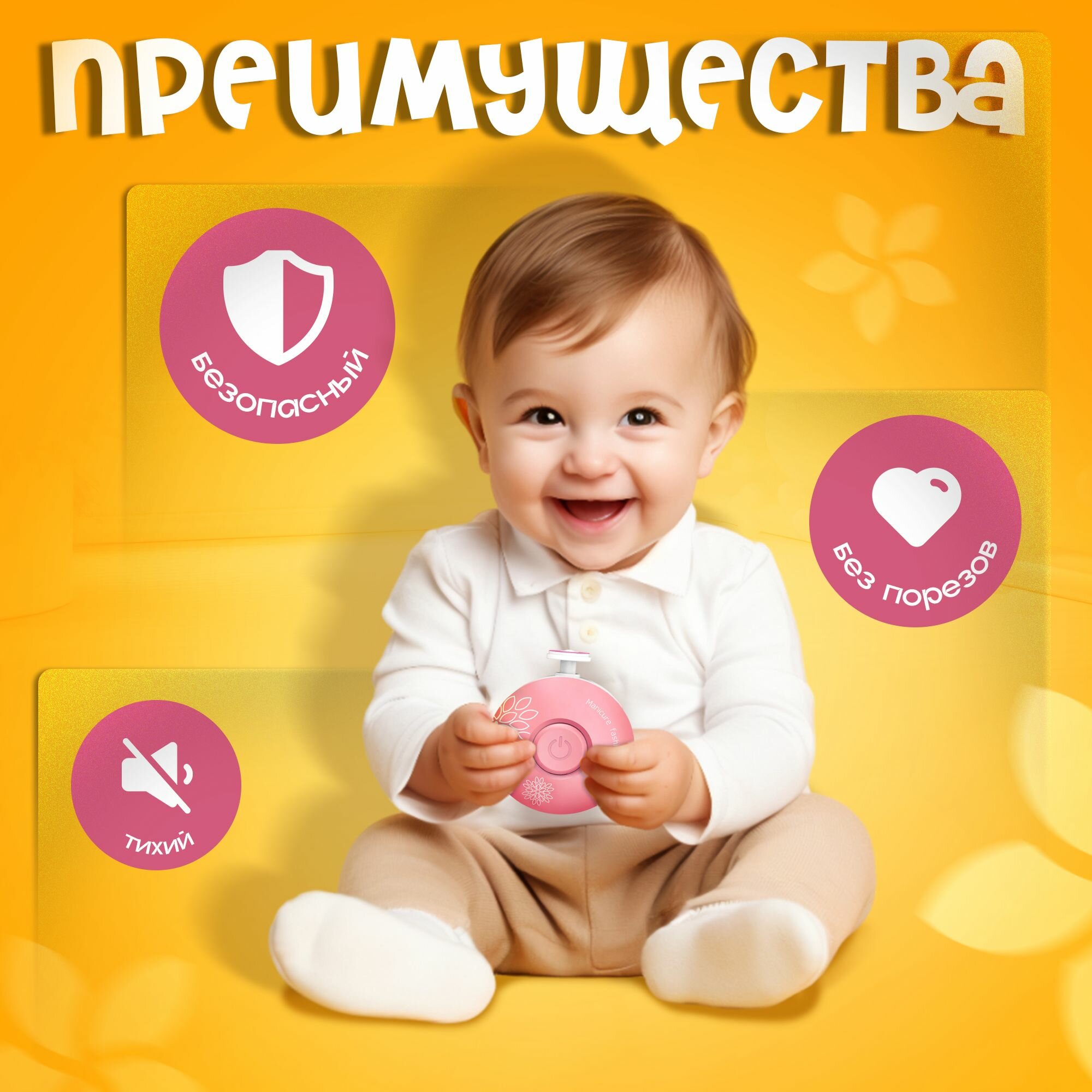 Триммер для ногтей - электрические маникюрные ножницы детские для новорожденных, 6 насадок, розовый интересное: