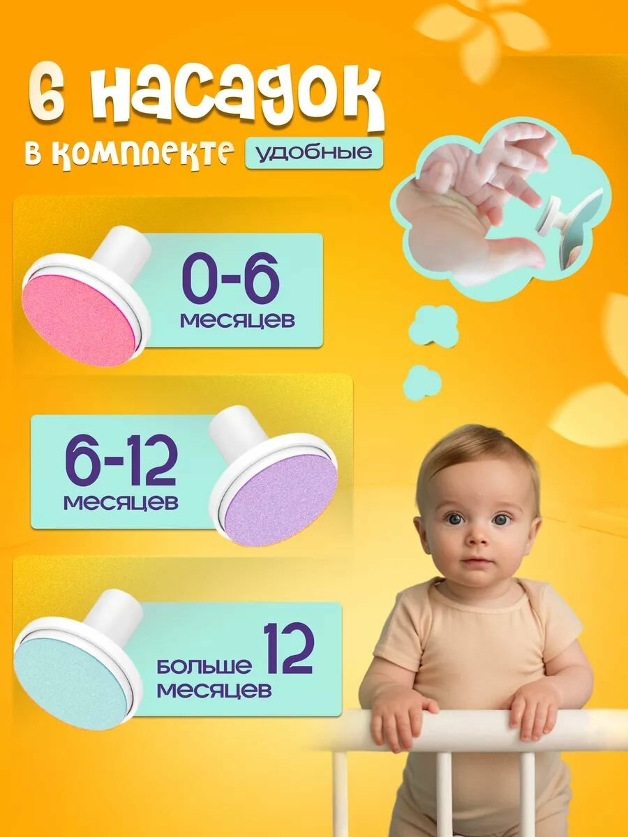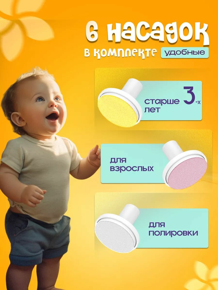 Триммер для ногтей - электрические маникюрные ножницы детские для новорожденных, 6 насадок, розовый